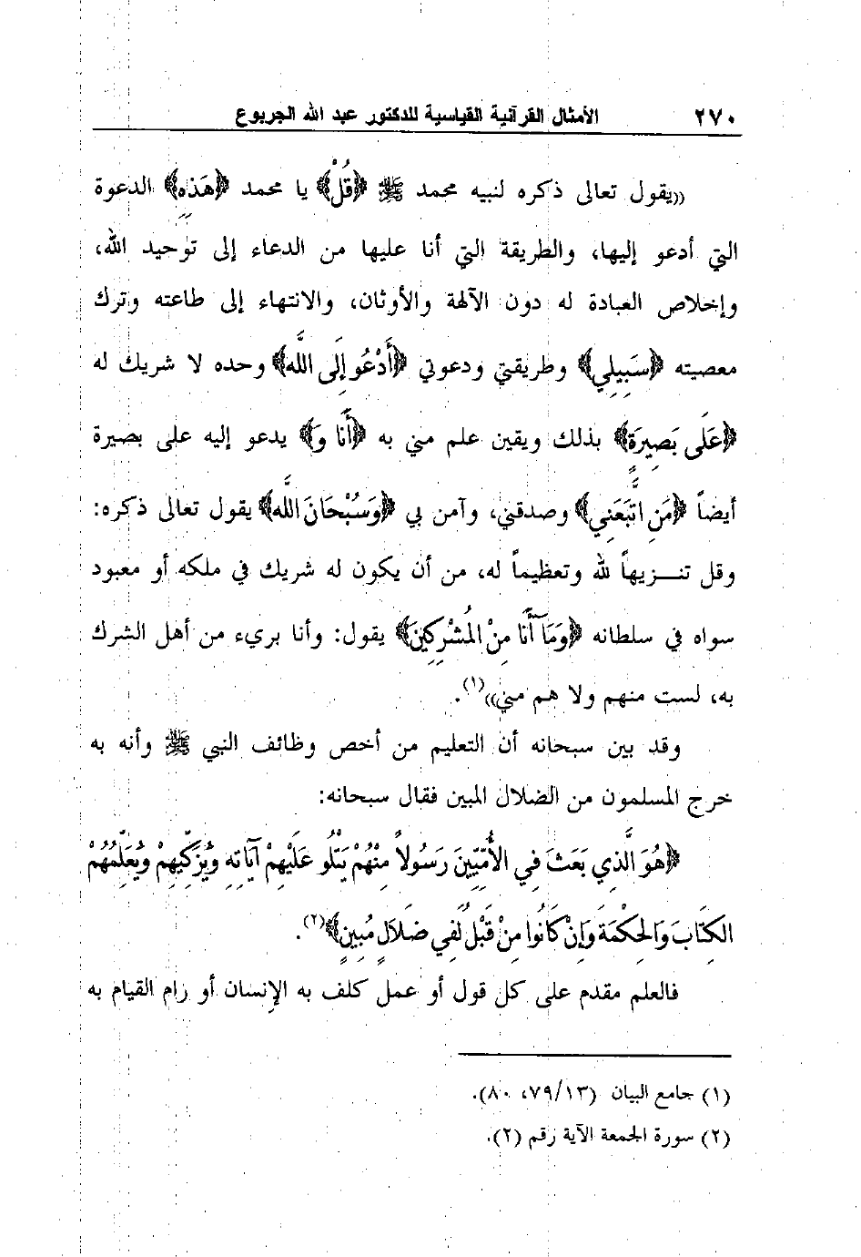 كتاب الأمثال القرآنية القياسية المضروبة للإيمان بالله