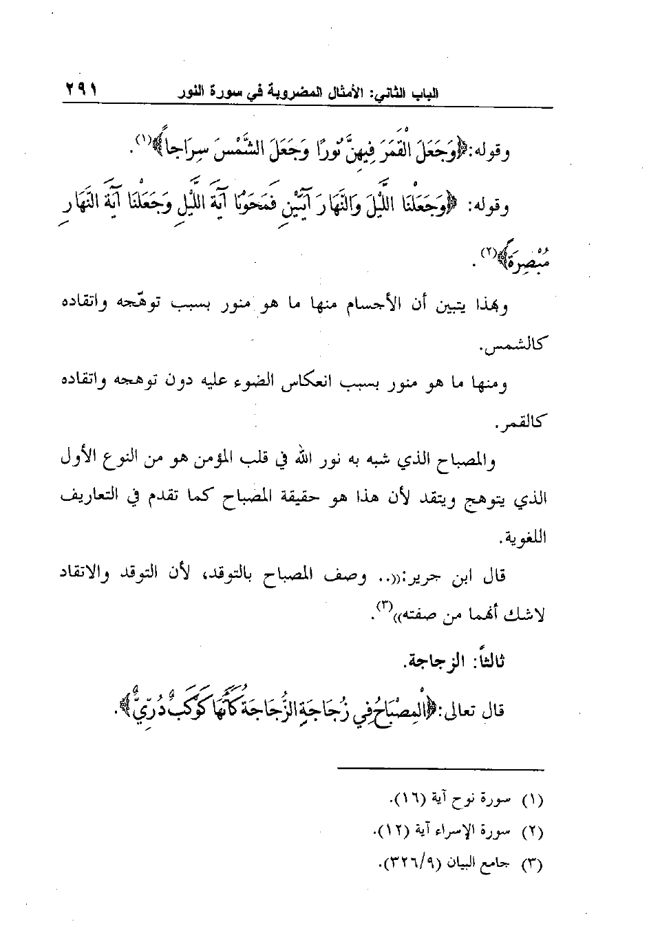 وقوله: {وَجَعَلَ الْقَمَرَ فِيهِنَّ نُورًا وَجَعَلَ الشَّمْسَ سِرَاجاً} 1.