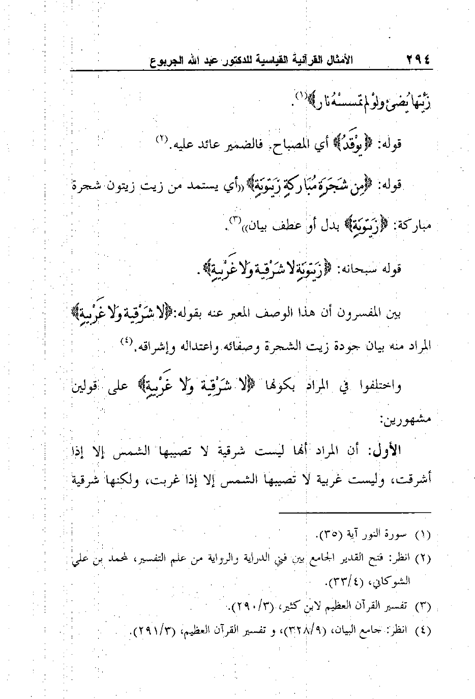 بين المفسرون أن هذا الوصف المعبر عنه بقوله: {لا شَرْقِية وَلا غَرْبيةٍ} المراد منه بيان جودة زيت الشجرة وصفائه واعتداله وإشراقه.4