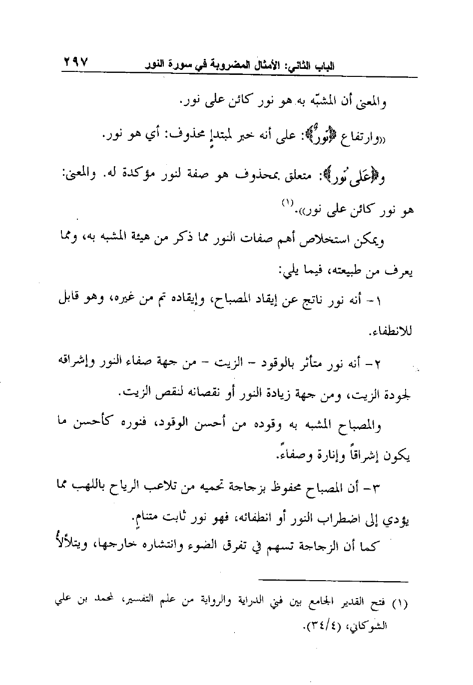 ويمكن استخلاص أهم صفات النور مما ذكر من هيئة المشبه به، ومما يعرف من طبيعته، فيما يلي: