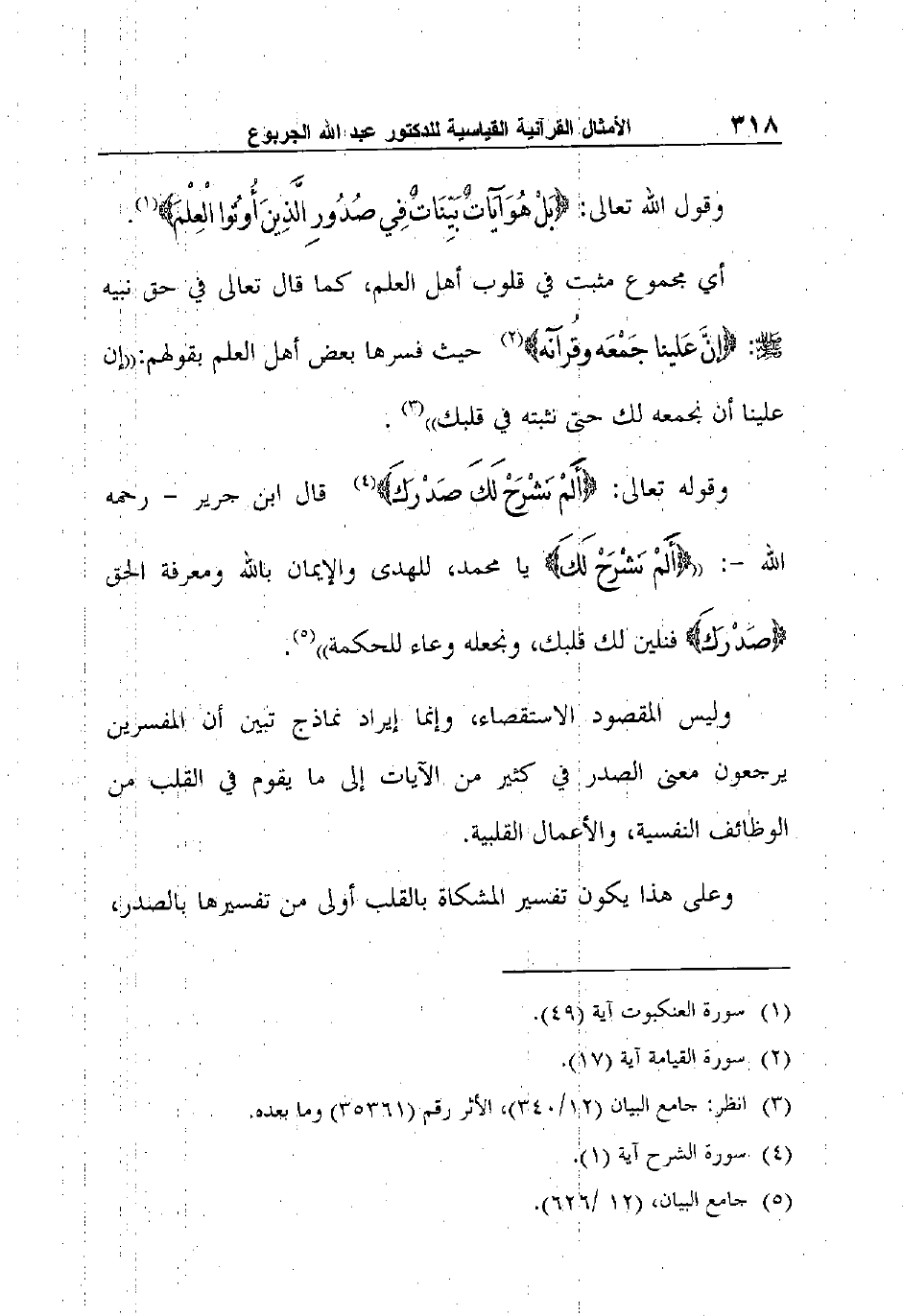 وليس المقصود الاستقصاء، وإنما إيراد نماذج تبين أن المفسرين يرجعون معنى الصدر في كثير من الآيات إلى ما يقوم في القلب من الوظائف النفسية، والأعمال القلبية.