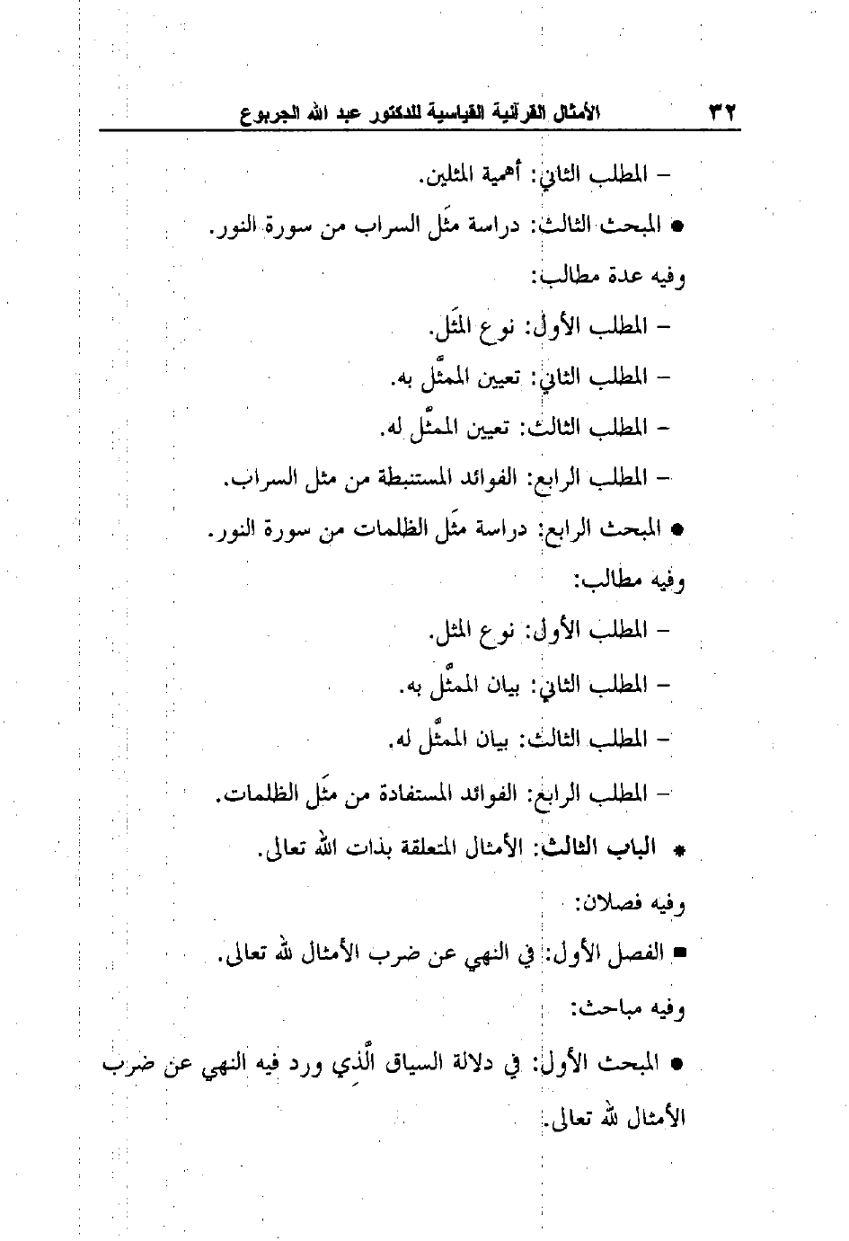 الباب الثالث: الأمثال المتعلقة بذات الله تعالى.