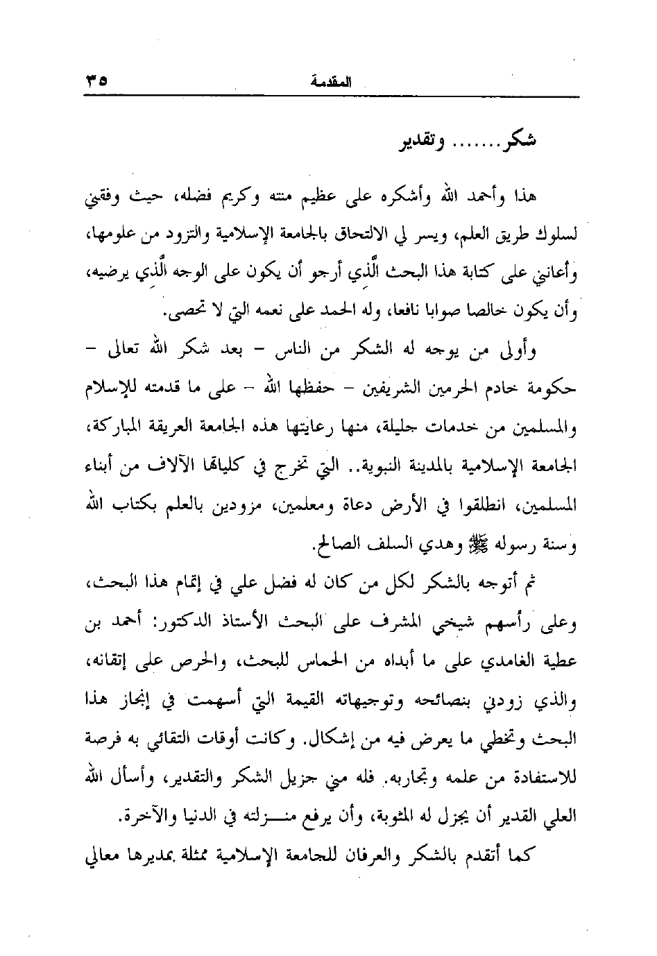 وأولى من يوجه له الشكر من الناس - بعد شكر الله تعالى - حكومة خادم الحرمين الشريفين - حفظها الله - على ما قدمته للإسلام والمسلمين من خدمات جليلة، منها رعايتها هذه الجامعة العريقة المباركة، الجامعة الإسلامية بالمدينة النبوية.. التي تخرج في كلياتها الآلاف من أبناء المسلمين، انطلقوا في الأرض دعاة ومعلمين، مزودين بالعلم بكتاب الله وسنة رسوله صلى الله عليه وسلم وهدي السلف الصالح.