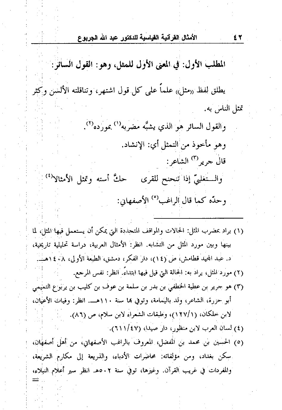 المطلب الأول: في المعنى الأول للمثل، وهو: القول السائر: