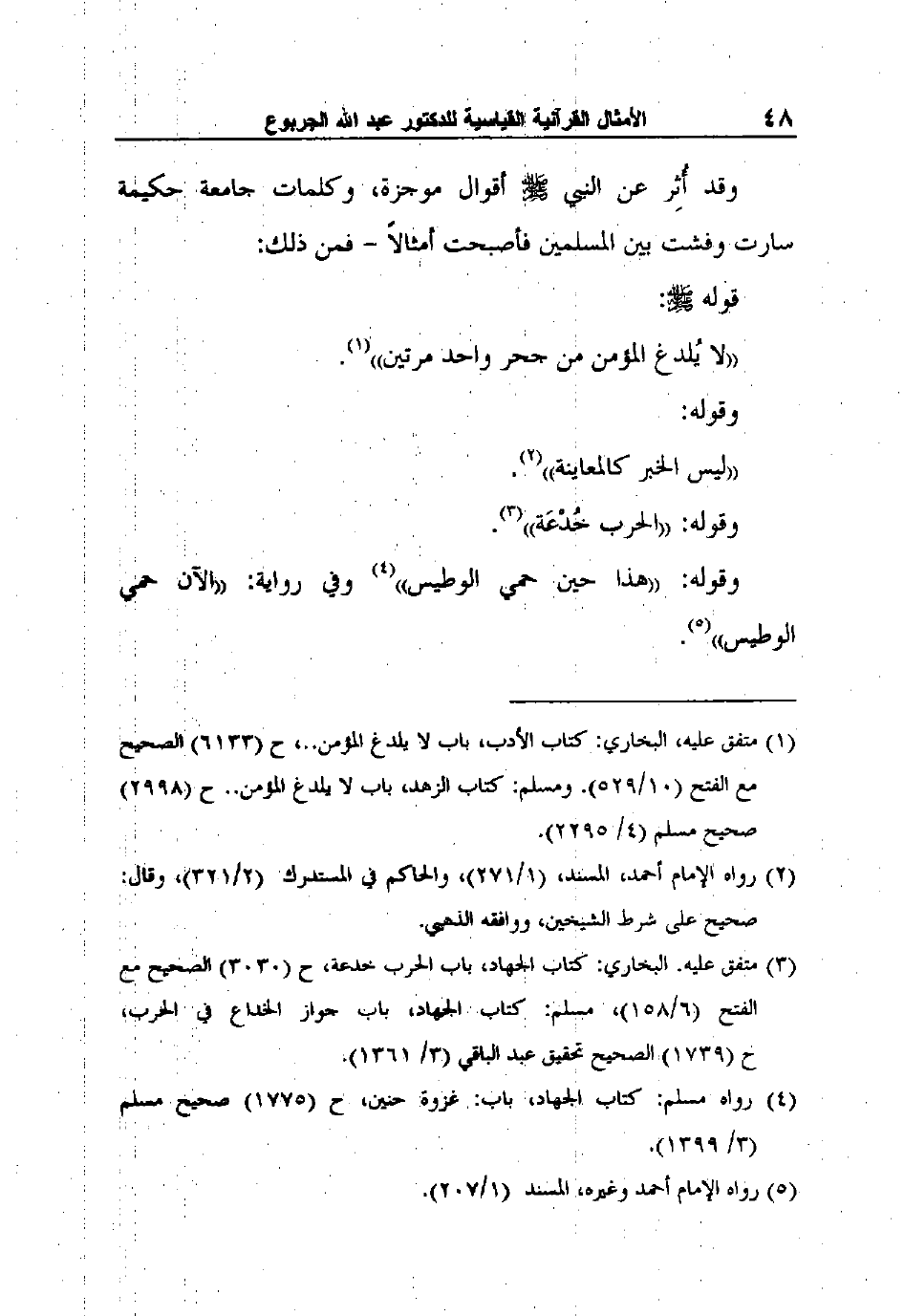 1 متفق عليه، البخاري: كتاب الأدب، باب لا يلدغ المؤمن..، ح (6133) الصحيح مع الفتح (10/529) . ومسلم: كتاب الزهد، باب لا يلدغ المؤمن.. ح (2998) صحيح مسلم (4/ 2295) .