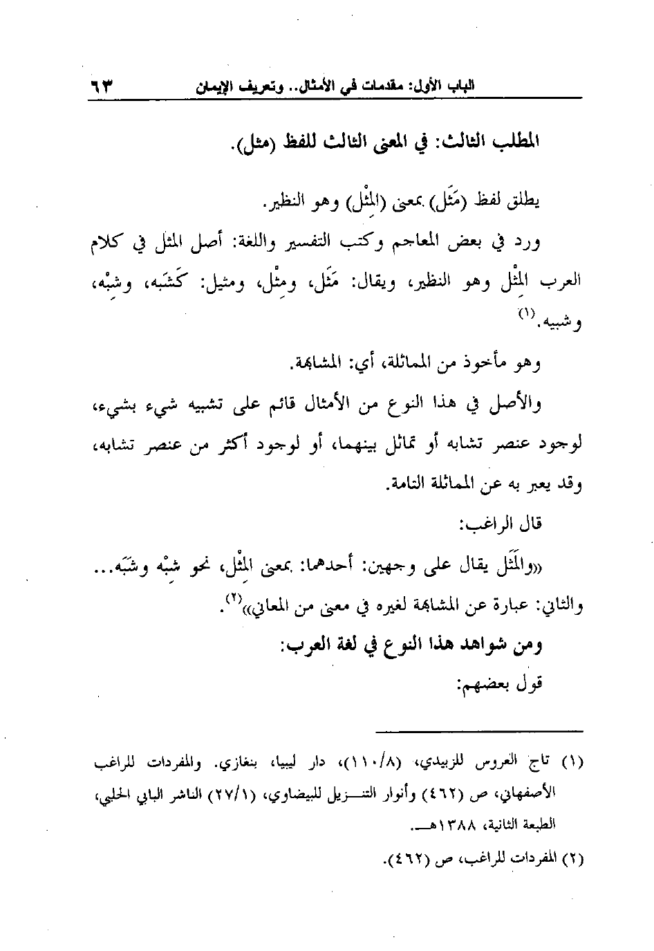 1 تاج العروس للزبيدي، (8/110) ، دار ليبيا، بنغازي. والمفردات للراغب الأصفهاني، ص (462) وأنوار التنزيل للبيضاوي، (1/27) الناشر البابي الحلبي، الطبعة الثانية، 1388هـ.
