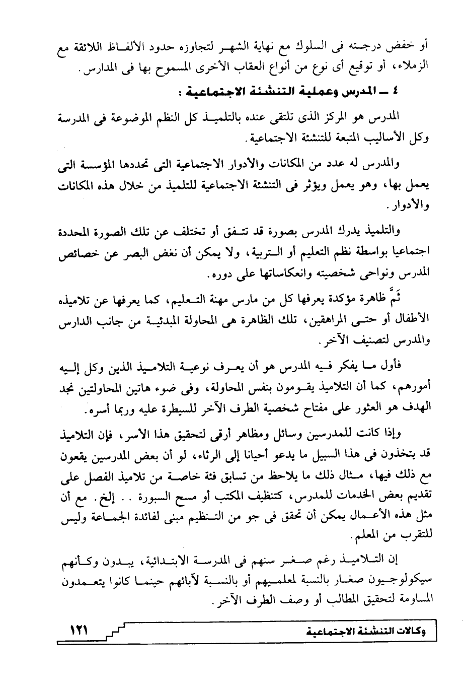 المدرس هو المركز الذي تلتقي عنده بالتلميذ كل النظم الموضوعة في المدرسة وكل الأساليب المتبعة للتنشئة الاجتماعية.
