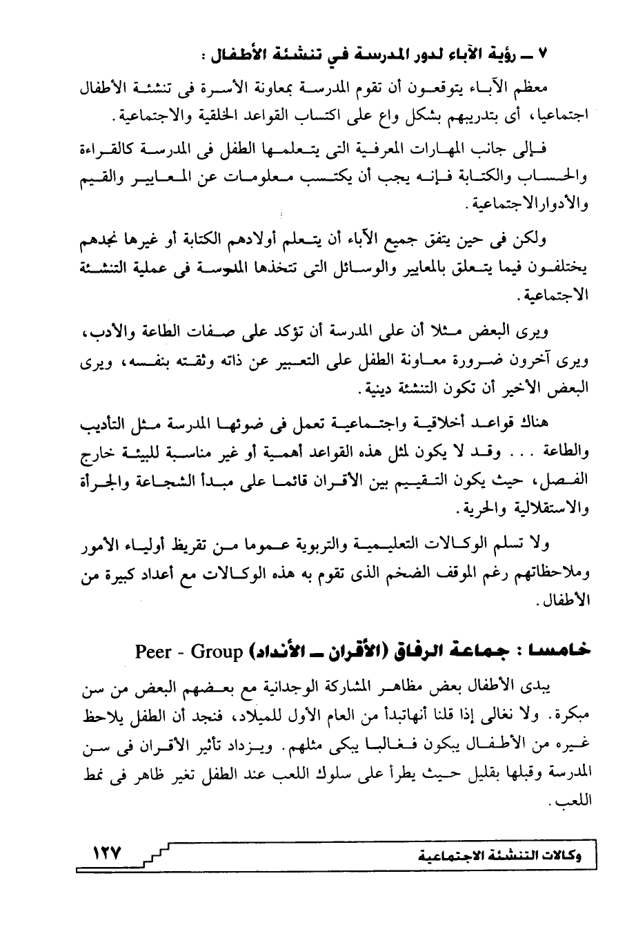 7- رؤية الآباء لدور المدرسة في تنشئة الأطفال: