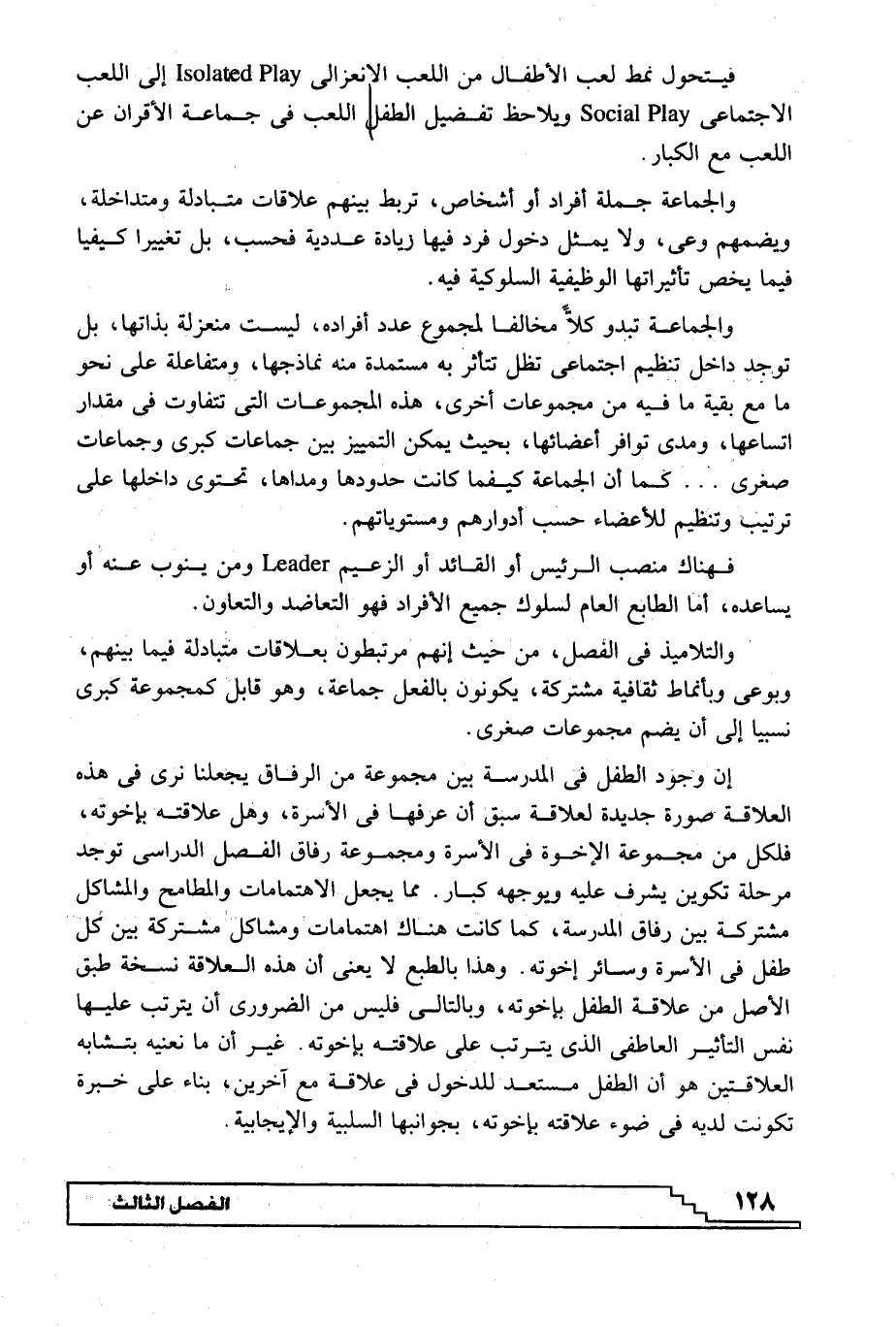 إن وجود الطفل في المدرسة بين مجموعة من الرفاق يجعلنا نرى في هذه العلاقة صورة جديدة لعلاقة سبق أن عرفها في الأسرة، وهل علاقته بإخوته، فلكل من مجموعة الإخوة في الأسرة ومجموعة رفاق الفصل الدراسي توجد مرحلة تكوين يشرف عليه ويوجهه كبار. مما يجعل الاهتمامات والمطامح والمشاكل مشتركة بين رفاق المدرسة، كما كانت هناك اهتمامات ومشاكل مشتركة بين كل طفل في الأسرة وسائر إخوته. وهذا بالطبع لا يعني أن هذه العلاقة نسخة طبق الأصل من علاقة الطفل بإخوته، وبالتالي فليس من الضروري أن يترتب عليها نفس التأثير العاطفي الذي يترتب على علاقته بإخوته. غير أن ما نعنيه بتشابه العلاقتين هو أن الطفل مستعد للدخول في علاقة مع آخرين، بناء على خبرة تكونت لديه في ضوء علاقته بإخوته، بجوانبها السلبية والإيجابية.