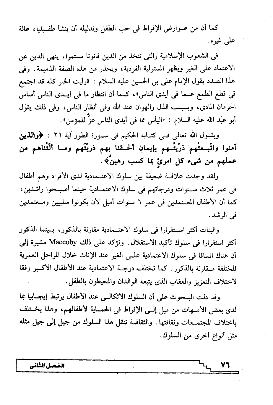 ويقول الله تعالى في كتابه الحكيم في سورة الطور آية 21 {وَالَّذِينَ آمَنُوا وَاتَّبَعَتْهُمْ ذُرِّيَّتُهُمْ بِإِيمَانٍ أَلْحَقْنَا بِهِمْ ذُرِّيَّتَهُمْ وَمَا أَلَتْنَاهُمْ مِنْ عَمَلِهِمْ مِنْ شَيْءٍ كُلُّ امْرِئٍ بِمَا كَسَبَ رَهِينٌ} .