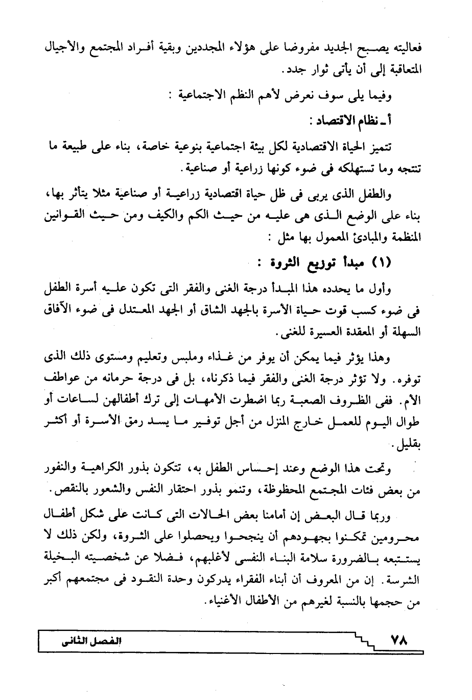 وأول ما يحدده هذا المبدأ درجة الغنى والفقر التي تكون عليه أسرة الطفل في ضوء كسب قوة حياة الأسرة بالجهد الشاق أو الجهد المعتدل في ضوء الآفاق السهلة أو المعقدة العسيرة للغنى.