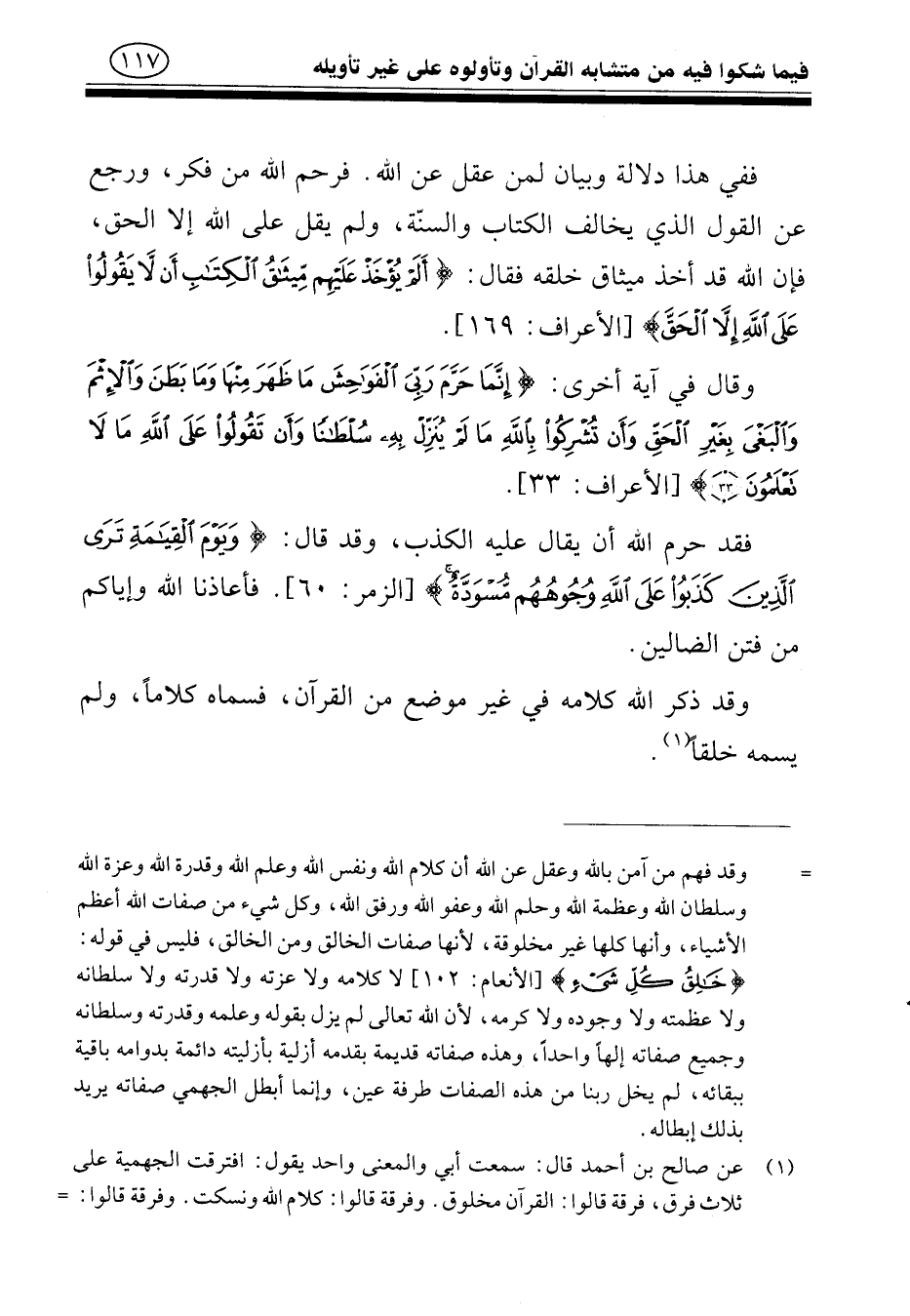 وقد ذكر الله كلامه في غير موضع من القرآن، فسماه كلامًا، ولم يسمه خلقًا.