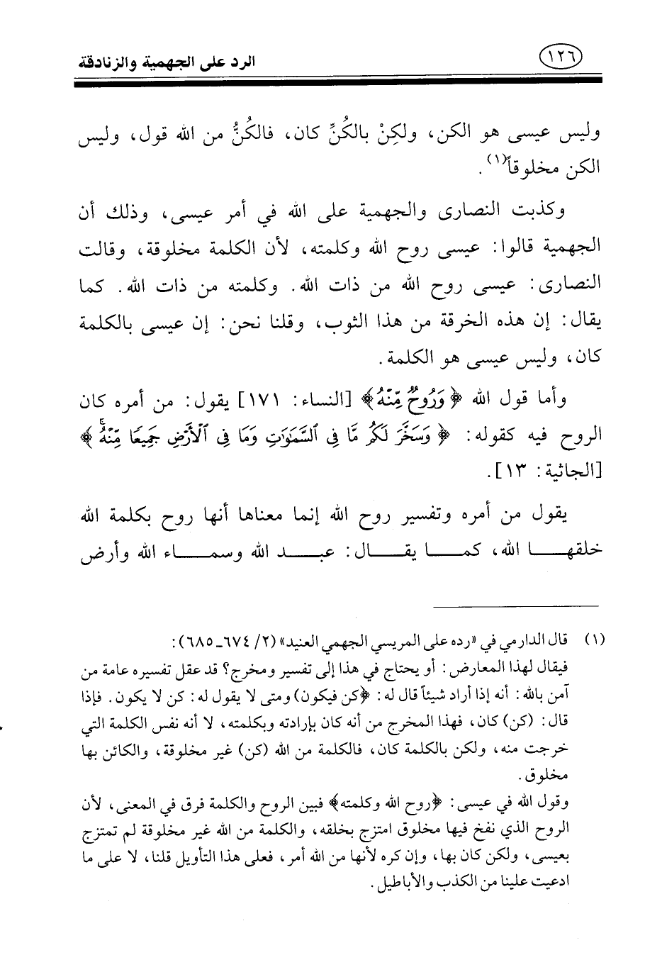 1 قال الدارمي في "رده على المريسي الجهمي العنيد" "674/2-685":