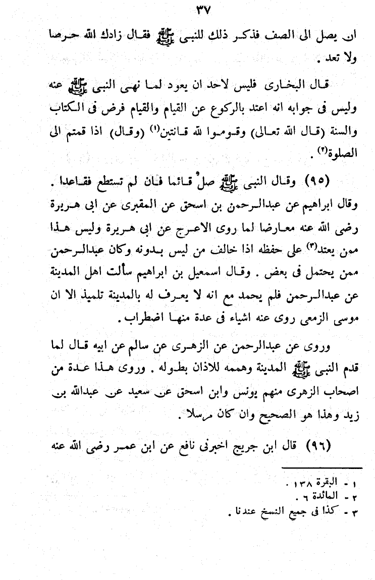 97 - قَالَ ابْنُ جَرِيجٍ: أَخْبَرَنِي نَافِعٌ، عَنِ ابْنِ عُمَرَ، رَضِيَ اللَّهُ عَنْهُ، -[38]- كَانَ الْمُسْلِمُونَ حِينَ قَدِمُوا الْمَدِينَةَ يَجْتَمِعُونَ يَتَحَيَّنُونَ الصَّلَاةَ، فَقَالَ بَعْضُهُمُ: اتَّخِذُوا نَاقُوسًا، وَقَالَ بَعْضُهُمْ: بَلْ بُوقًا، فَقَالَ عُمَرُ: أَوَلَا تَبْعَثُونَ رَجُلًا يُنَادِي بِالصَّلَاةِ فَقَالَ النَّبِيُّ صَلَّى اللَّهُ عَلَيْهِ وَسَلَّمَ: يَا «§بِلَالُ قُمْ فَنَادِ بِالصَّلَاةِ» وَهَذَا خِلَافُ مَا ذَكَرَ عَبْدُ الرَّحْمَنِ عَنِ الزُّهْرِيِّ عَنْ سَالِمٍ، عَنِ ابْنِ عُمَرَ
