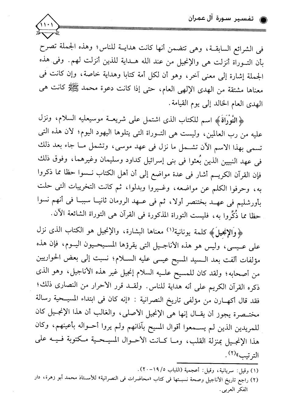 (¬2) راجع تاريخ الأناجيل وصحة نسبتها في كتاب " محاضرات في النصراية " للأستاذ محمد أبو زهرة، دار الفكر العربي.