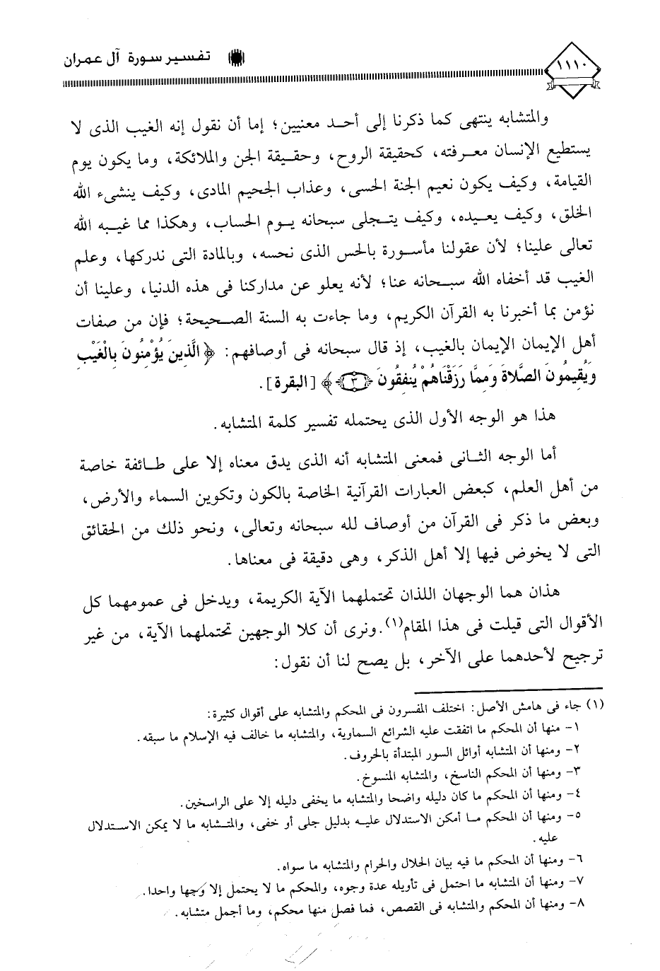 (¬1) جاء في هامش الأصل: اختلف المفسرون في المحكم والمتشابه على أقوال كثيرة: