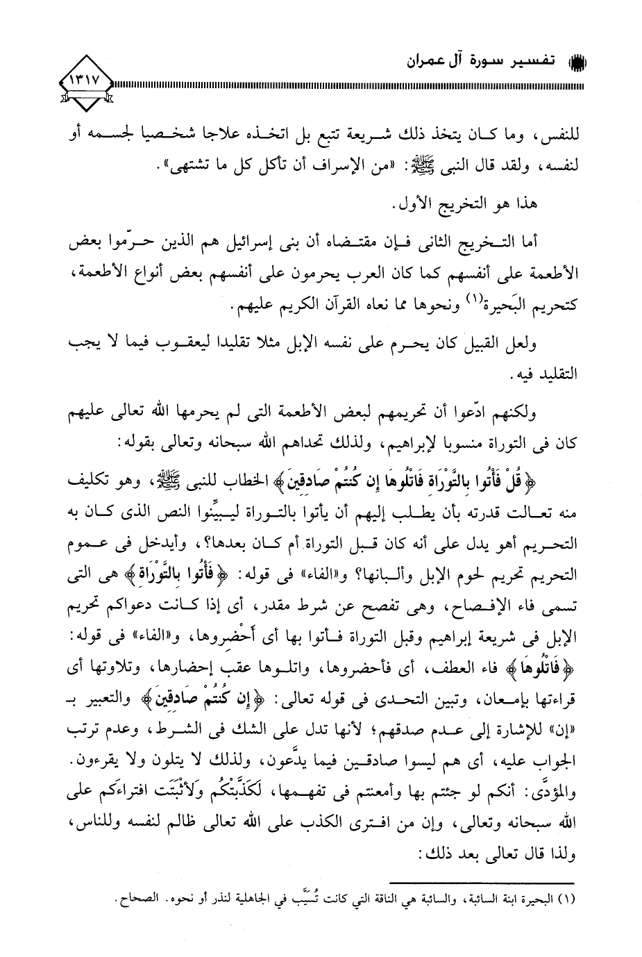 (¬1) البحيرة ابنة السائبة، والسائبة هي الناقة التي كانت تُسَيَّب في الجاهلية لنذر أو نحوه. الصحاح.