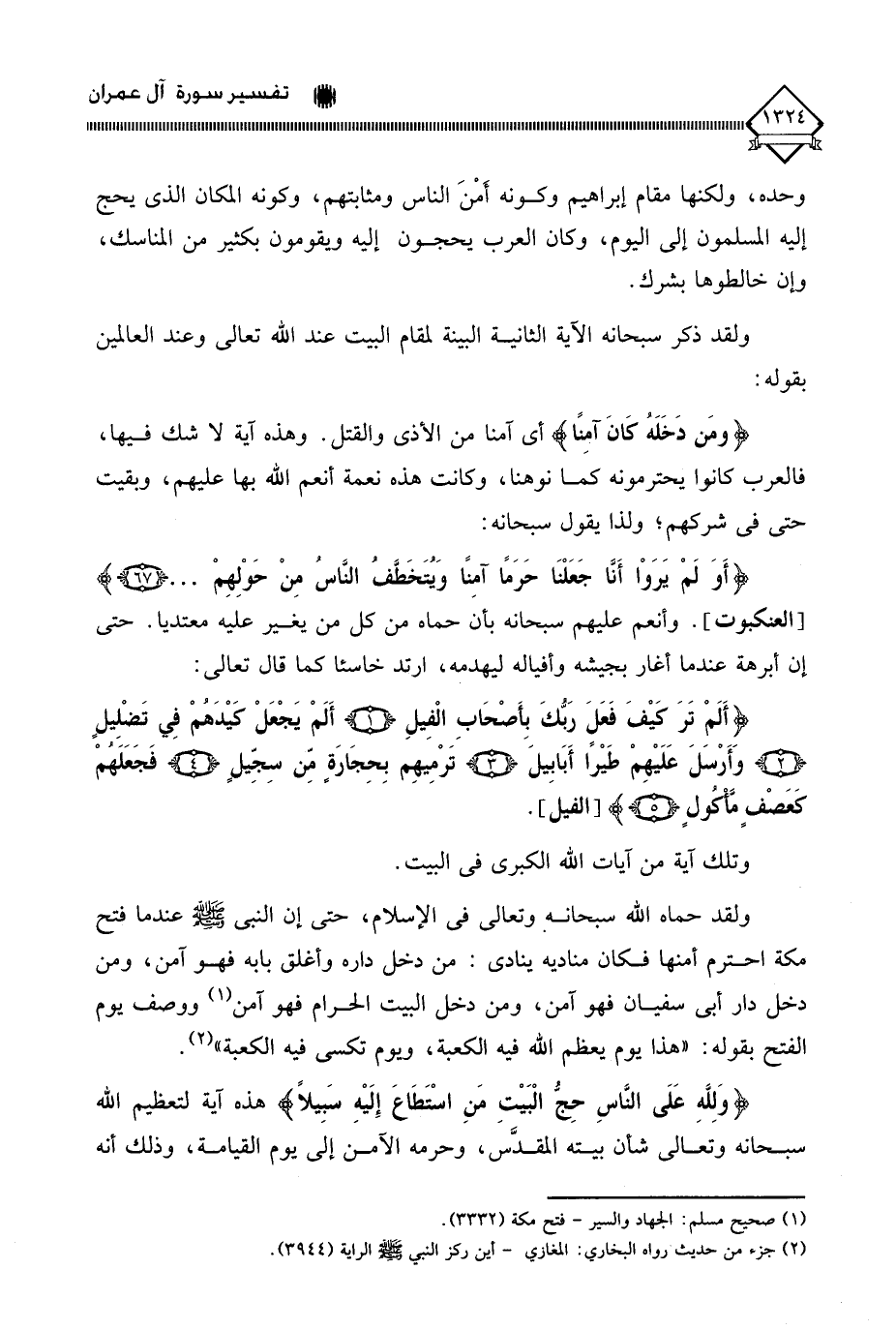 (ومَن دَخَلَهُ كَانَ آمِنًا) أي آمنا من الأذى والقتل. وهذه آية لَا شك فيها، فالعرب كانوا يحترمونه كما نوهنا، وكانت هذه نعمة أنعم الله بها عليهم، وبقيت حتى في شركهم؛ ولذا يقول سبحانه: