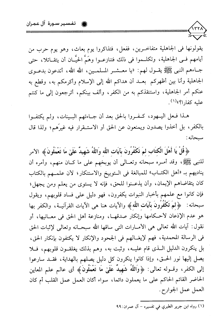 (¬1) رواه ابن جرير الطبري في تفسيره - آل عمران: 99