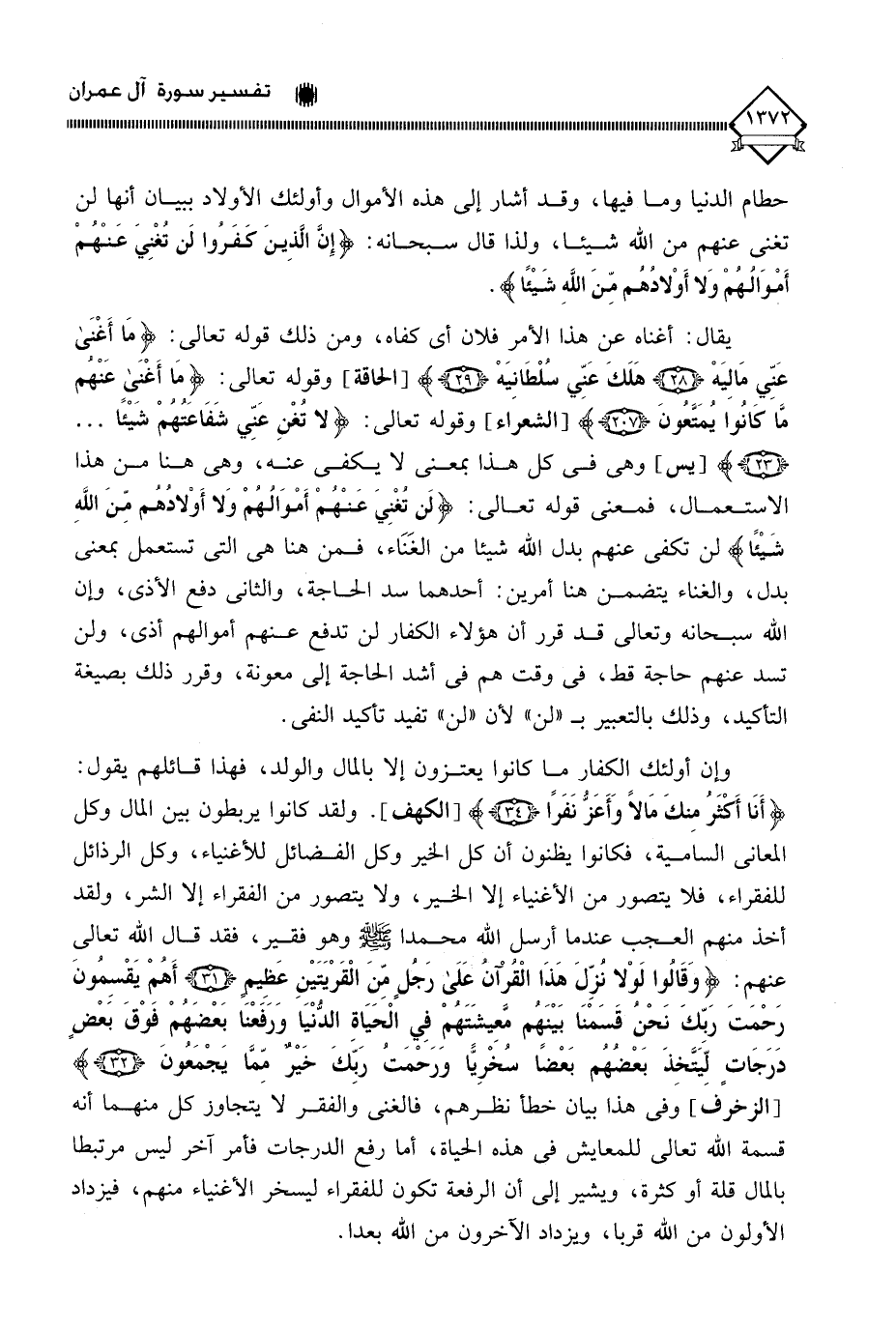(إِنَّ الذِينَ كَفَرُوا لَن تُغْنِيَ عَنْهُمْ أَمْوَالُهُمْ وَلا أَوْلادُهُم مِّنَ اللَّهِ شَيْئًا).