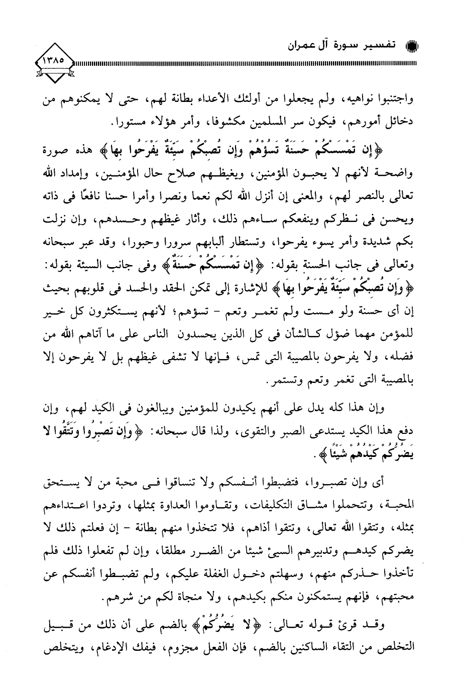 (إِنْ تَمْسَسْكُمْ حَسَنَةٌ تَسُؤْهُمْ وَإِنْ تُصِبْكُمْ سَيِّئَةٌ يَفْرَحُوا بِهَا ... (120)