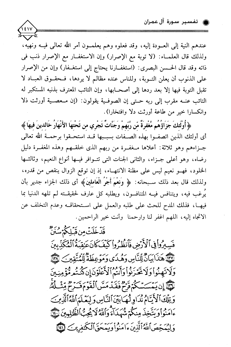 (أُولَئِكَ جَزَاؤُهُمْ مَغْفِرَةٌ مِنْ رَبِّهِمْ وَجَنَّاتٌ تَجْرِي مِنْ تَحْتِهَا الْأَنْهَارُ خَالِدِينَ فِيهَا ... (136)