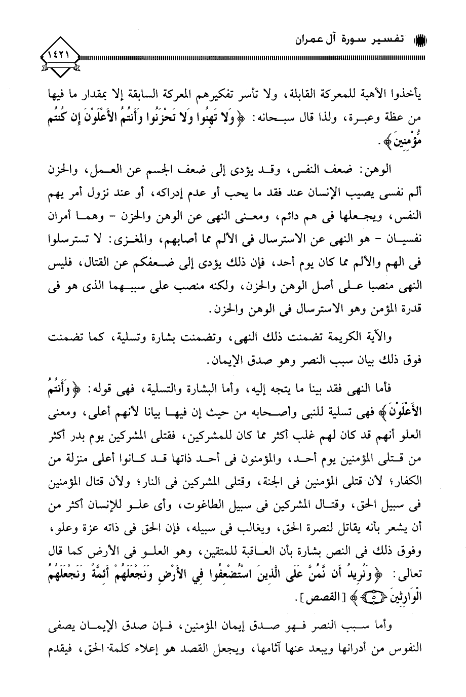 (وَلَا تَهِنُوا وَلَا تَحْزَنُوا وَأَنْتُمُ الْأَعْلَوْنَ إِنْ كُنْتُمْ مُؤْمِنِينَ (139)