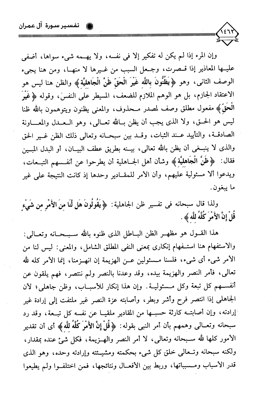 ولذا قال سبحانه في تفسير ظن الجاهلية: (يَقُولُونَ هَل لَّنَا مِنَ الأَمْرِ مِن شَيْءٍ قُلْ إِن الأَمْرَ كُلَّهُ لِلَّهِ).