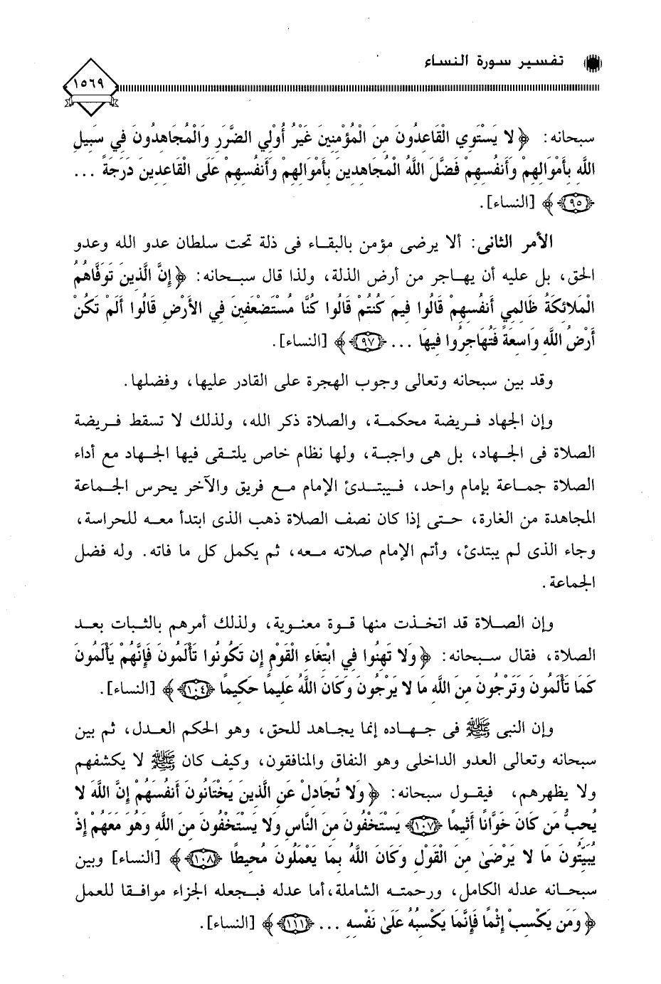 سبحانه: (لَا يَسْتَوِي الْقَاعِدُونَ مِنَ الْمُؤْمِنِينَ غَيْرُ أُولِي الضَّرَرِ وَالْمُجَاهِدُونَ فِي سَبِيلِ اللَّهِ بِأَمْوَالِهِمْ وَأَنْفُسِهِمْ فَضَّلَ اللَّهُ الْمُجَاهِدِينَ بِأَمْوَالِهِمْ وَأَنْفُسِهِمْ عَلَى الْقَاعِدِينَ دَرَجَةً. . .).