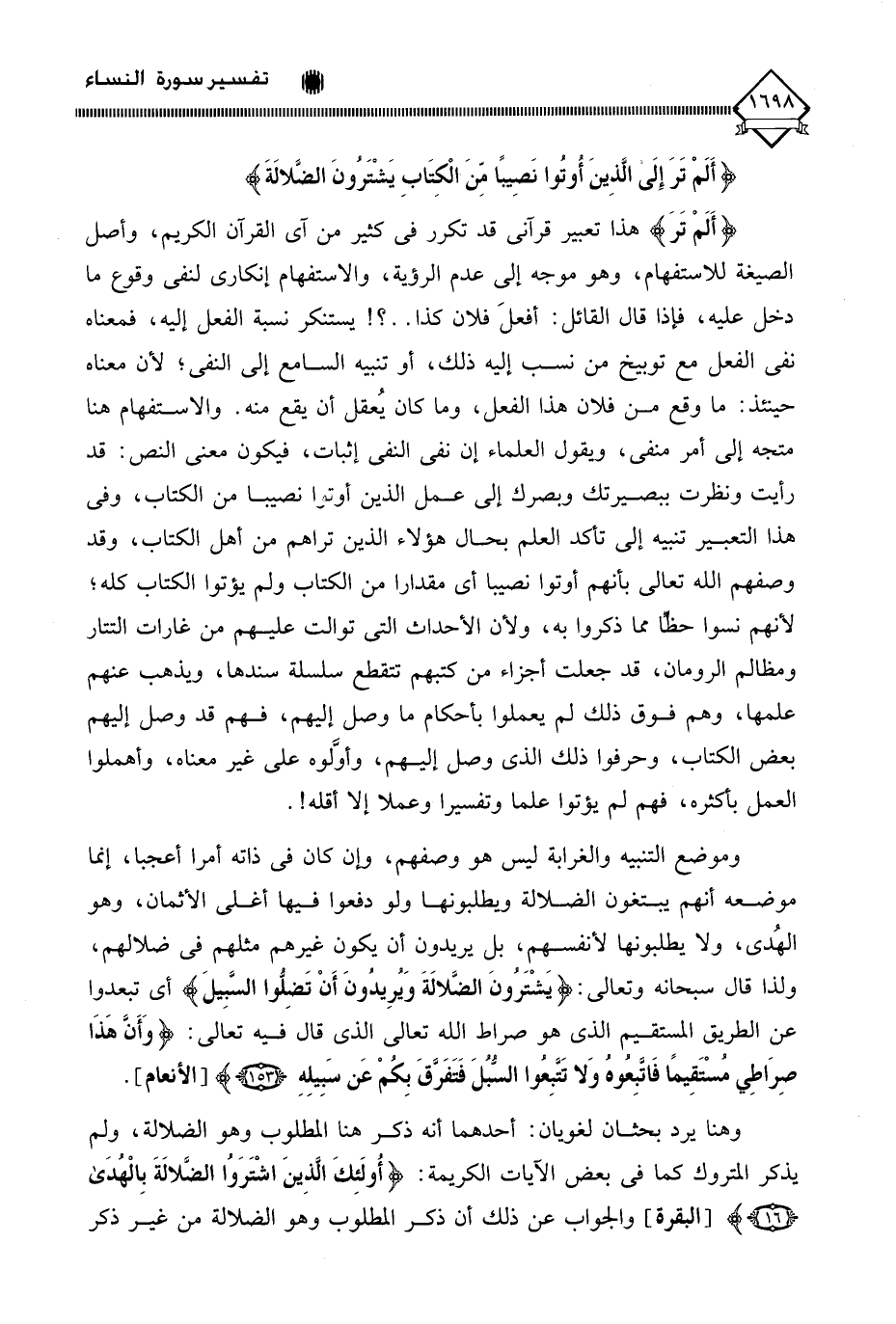 (أَلَمْ تَرَ إِلَى الَّذِينَ أُوتُوا نَصِيبًا مِنَ الْكِتَابِ يَشْتَرُونَ الضَّلَالَةَ)
