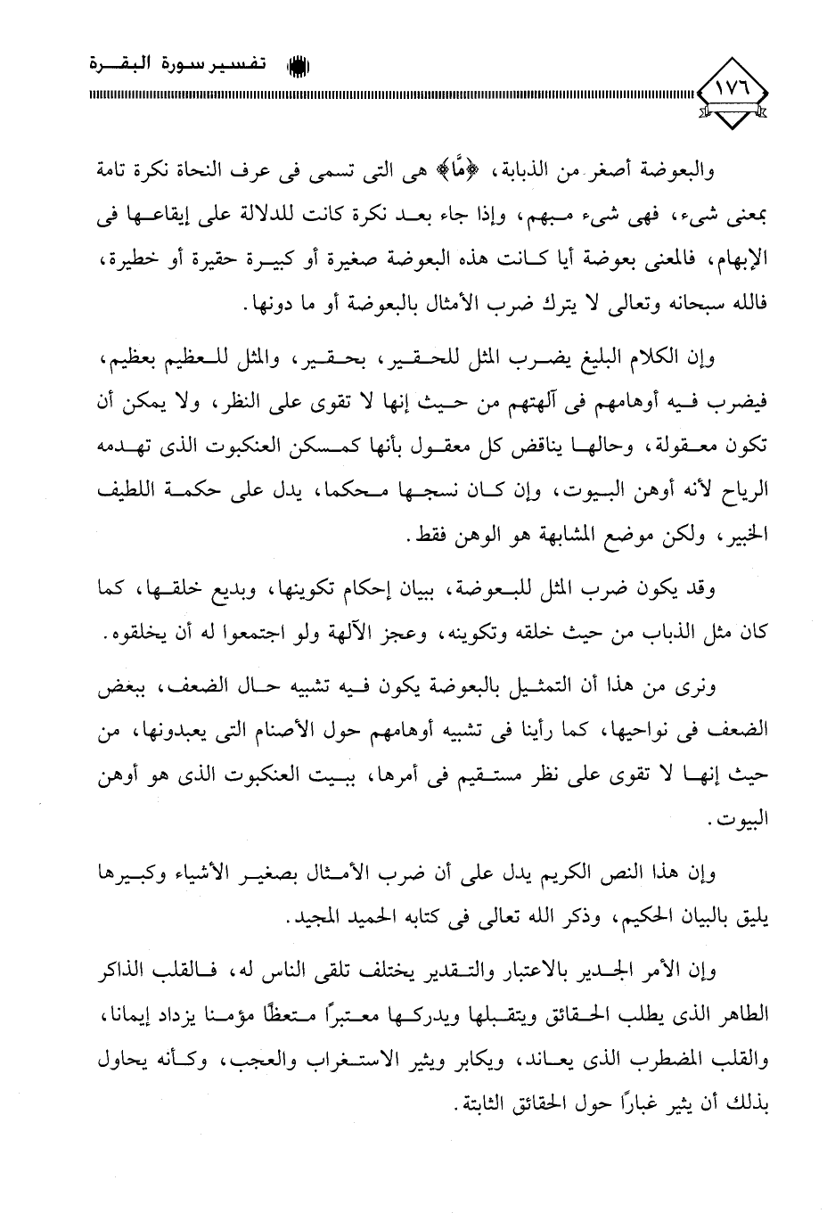 وإن هذا النص الكريم يدل على أن ضرب الأمثال بصغير الأشياء وكبيرها يليق بالبيان الحكيم، وذكر الله تعالى في كتابه الحميد المجيد.