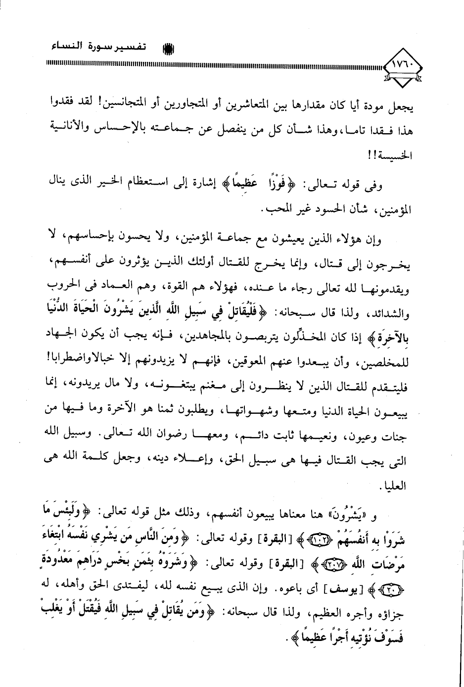 (فَلْيُقَاتِلْ فِي سَبِيلِ اللَّهِ الَّذِينَ يَشْرُونَ الْحَيَاةَ الدُّنْيَا بِالْآخِرَةِ ... (74)