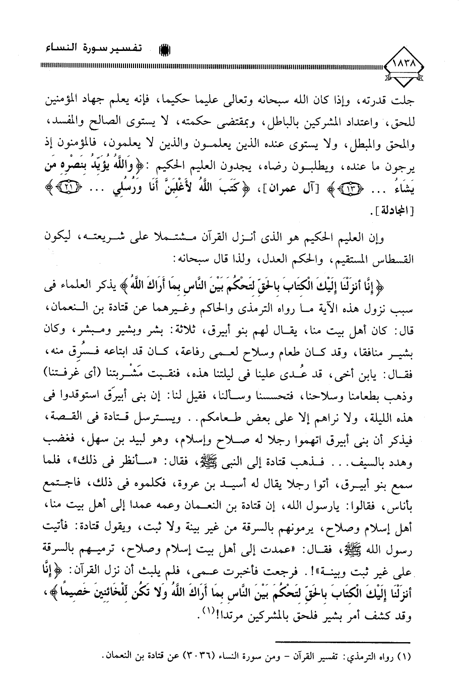 (¬1) رواه الترمذي: تفسير القرآن - ومن سورة النساء (3036) عن قتادة بن النعمان.