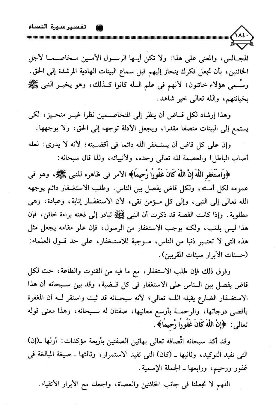 (وَاسْتَغْفِرِ اللَّهَ إِنَّ اللَّهَ كَانَ غَفُورًا رَحِيمًا (106)