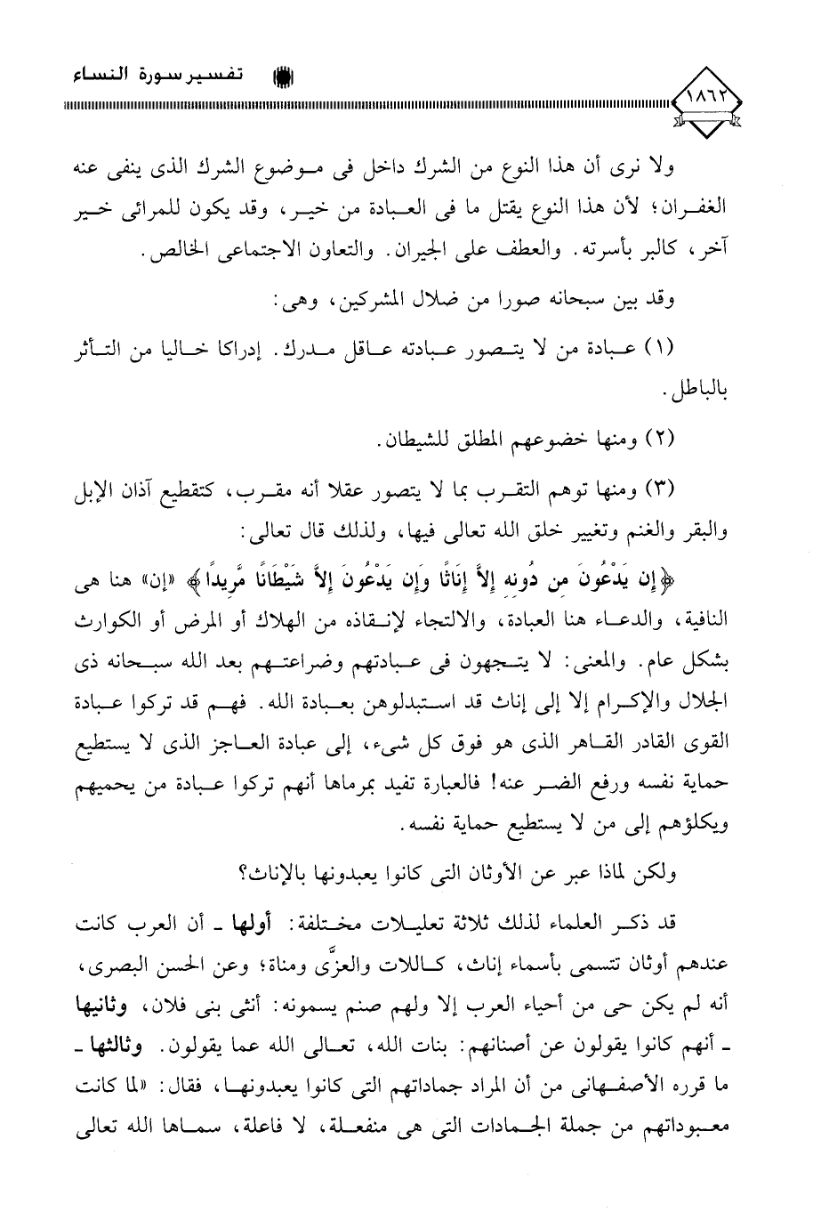 (إِنْ يَدْعُونَ مِنْ دُونِهِ إِلَّا إِنَاثًا وَإِنْ يَدْعُونَ إِلَّا شَيْطَانًا مَرِيدًا (117)