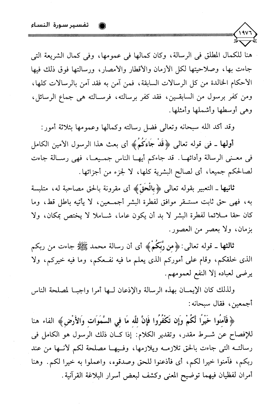 ولذلك كان الإيمان بهذه الرسالة والإذعان لها أمرا واجبا لمصلحة الناس أجمعين، فقال سبحانه:
