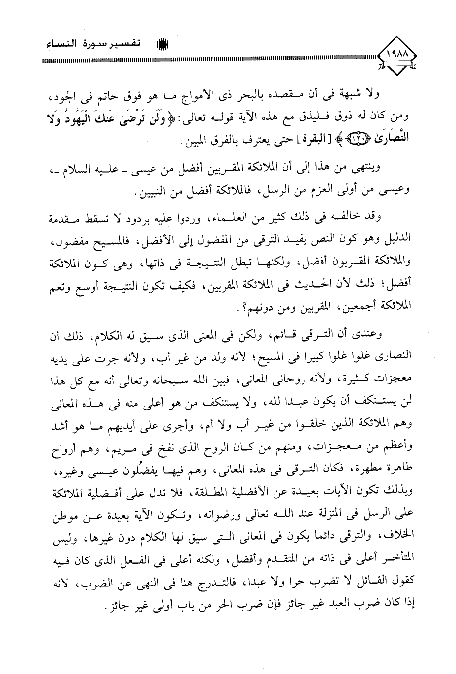 وينتهي من هذا إلى أن الملائكة المقربين أفضل من عيسى - عليه السلام -، وعيسى من أولي العزم من الرسل، فالملائكة أفضل من النبيين.