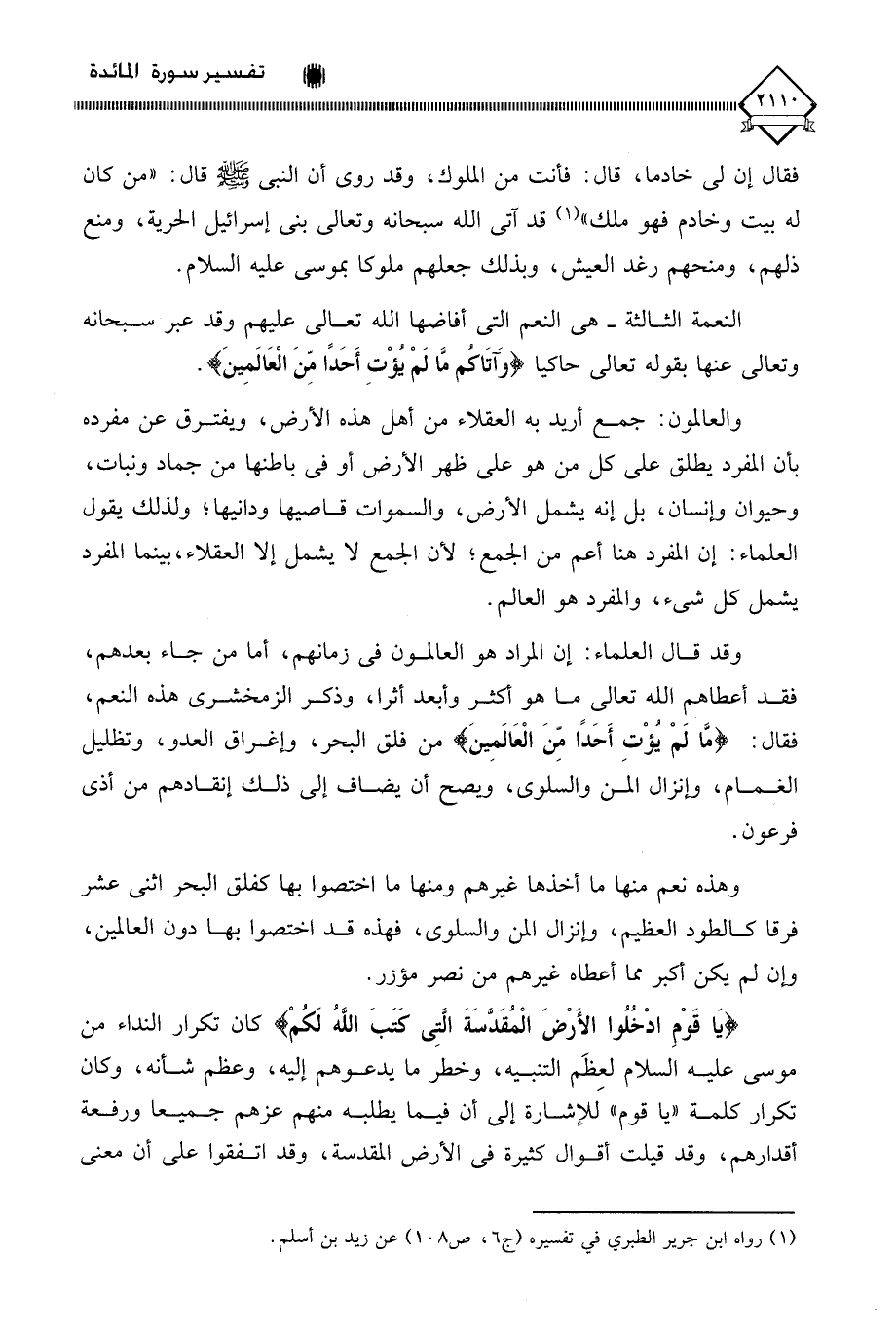 (¬1) رواه ابن جرير الطبري في تفسيره (ج 6، ص 108) عن زيد بن أسلم.