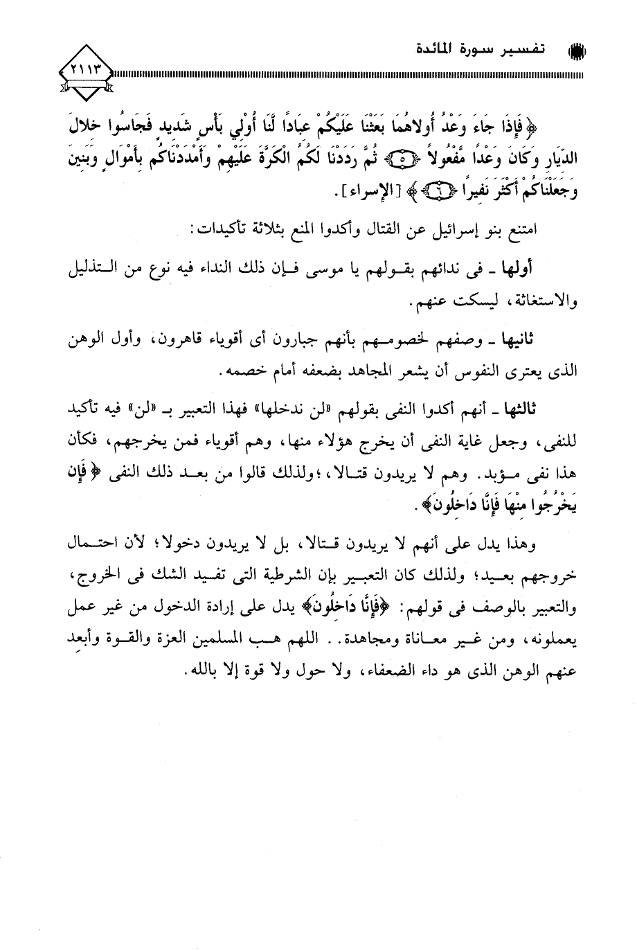 (فَإِذَا جَاءَ وَعْدُ أُولَاهُمَا بَعَثْنَا عَلَيْكُمْ عِبَادًا لَنَا أُولِي بَأْسٍ شَدِيدٍ فَجَاسُوا خِلَالَ الدِّيَارِ وَكَانَ وَعْدًا مَفْعُولًا (5) ثُمَّ رَدَدْنَا لَكُمُ الْكَرَّةَ عَلَيْهِمْ وَأَمْدَدْنَاكُمْ بِأَمْوَالٍ وَبَنِينَ وَجَعَلْنَاكُمْ أَكْثَرَ نَفِيرًا (6).