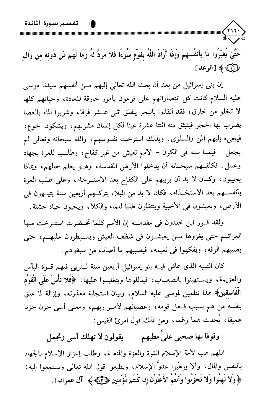 وقوفا بها صحبى عليَّ مطيهم ... يقولون لَا تهلك أسى وتجمل اللهم هب لأمة الإسلام القوة والعزة والمنعة، وطلب إعزاز الإسلام بالجهاد بالنفس والمال، وألا يرهَبوا عدوَّ الإسلام، ويطيعوا قول الله تعالى ويستمعوا إليه: (وَلا تَهِنُوا وَلا تَحْزَنُوا وَأَنتُم الأَعْلَوْنَ إِن كُنتُم مُّؤْمِنِينَ).