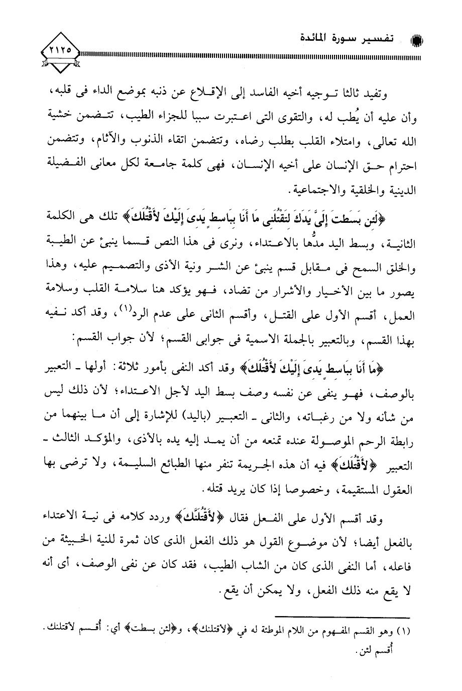 (لَئِنْ بَسَطْتَ إِلَيَّ يَدَكَ لِتَقْتُلَنِي مَا أَنَا بِبَاسِطٍ يَدِيَ إِلَيْكَ لِأَقْتُلَكَ ... (28)