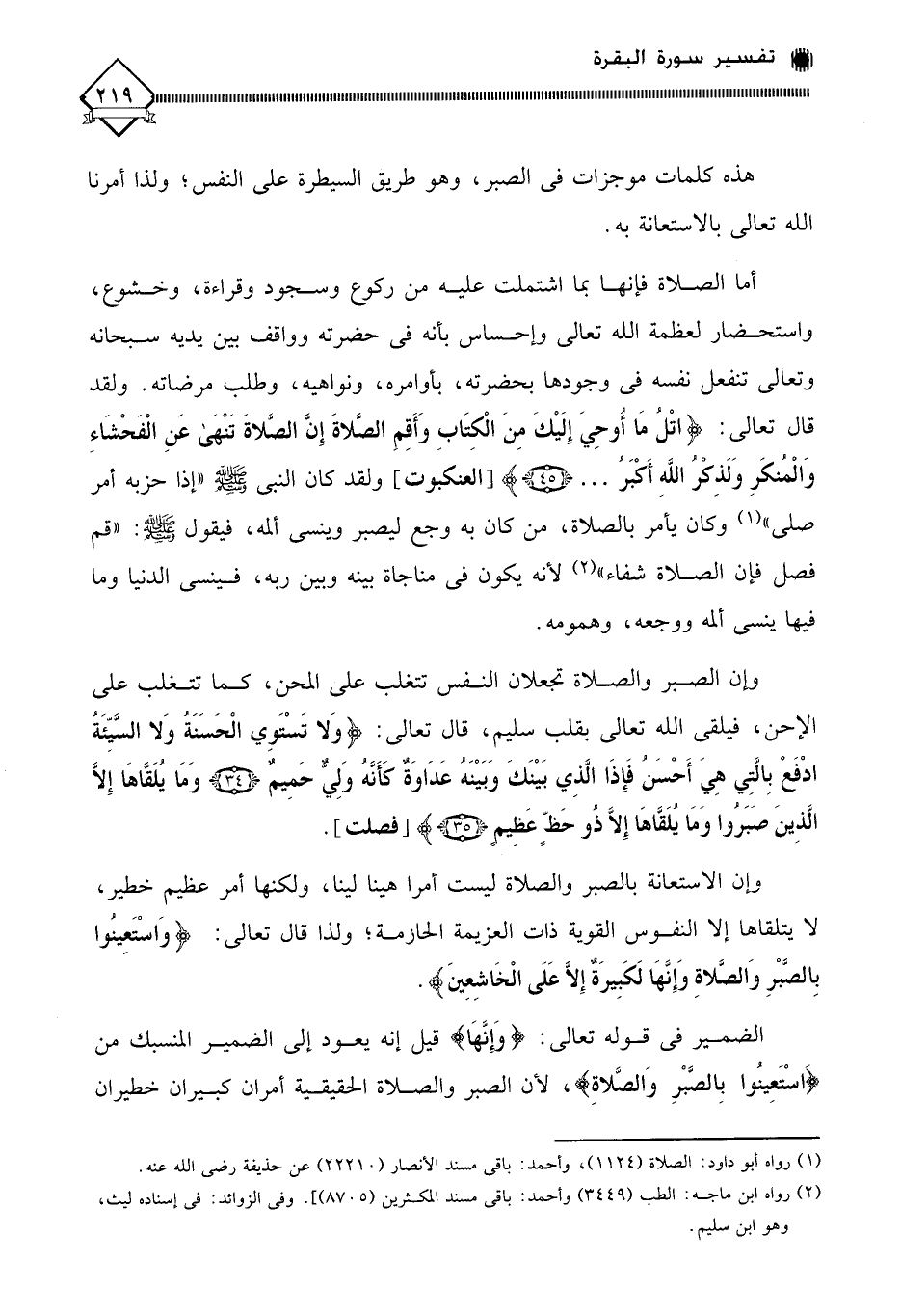 الضمير في قوله تعالى: (وَإِنَّهَا) قيل إنه يعود إلى الضمير المنسبك من (اسْتَعِينُوا بِالصَّبْرِ وَالصَّلاةِ)، لأن الصبر والصلاة الحقيقية أمران كبيران خطيران