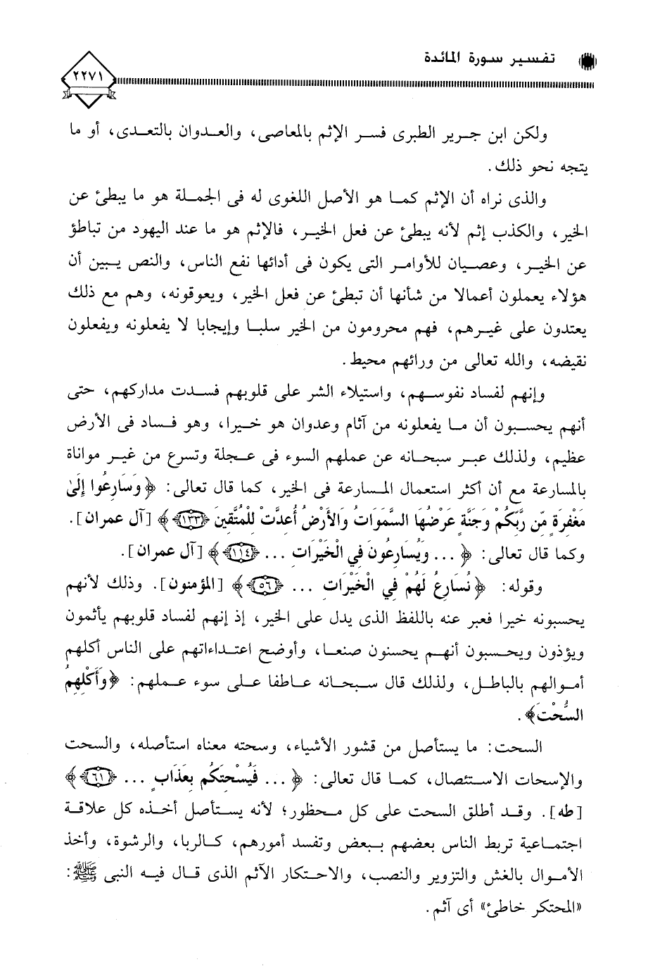 والذي نراه أن الإثم كما هو الأصل اللغوي له في الجملة هو ما يبطئ عن الخير، والكذب إثم لأنه يبطئ عن فعل الخير، فالإثم هو ما عند اليهود من تباطؤ عن الخير، وعصيان للأوامر التي يكون في أدائها نفع الناس، والنص يبين أن هؤلاء يعملون أعمالا من شأنها أن تبطئ عن فعل الخير، ويعوقونه، وهم مع ذلك يعتدون على غيرهم، فهم محرومون من الخير سلبا وإيجابا لَا يفعلونه ويفعلون نقيضه، والله تعالى من ورائهم محيط.