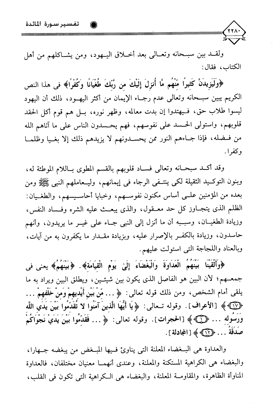 (وَلَيَزِيدَنَّ كَثِيرًا مِنْهُمْ مَا أُنْزِلَ إِلَيْكَ مِنْ رَبِّكَ طُغْيَانًا وَكُفْرًا) في هذا النص الكريم يبين سبحانه وتعالى عدم رجاء الإيمان من أكثر اليهود، ذلك أن اليهود ليسوا طلاب حق، فيهتدوا إن بدت معالمه، وظهر نوره، بل هم قوم أكل الحقد قلوبهم، واستولى الحسد على نفوسهم، فهم يحسدون الناس على ما آتاهم الله من فضله، فإذا جاءهم النور ممن يحسدونهم لَا يزيدهم ذلك إلا بغيا وظلما وكفرا.