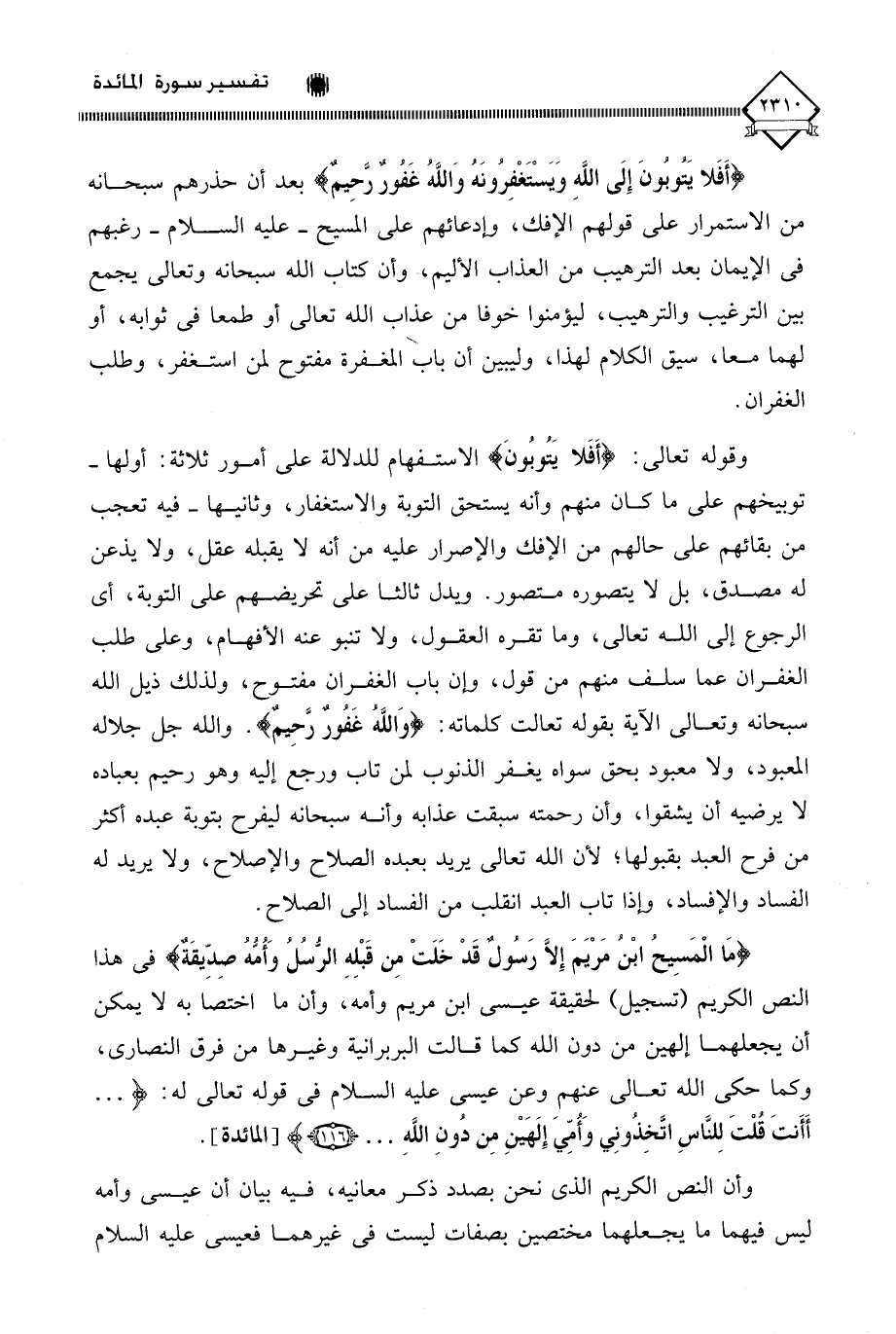 (أَفَلَا يَتُوبُونَ إِلَى اللَّهِ وَيَسْتَغْفِرُونَهُ وَاللَّهُ غَفُورٌ رَحِيمٌ (74)