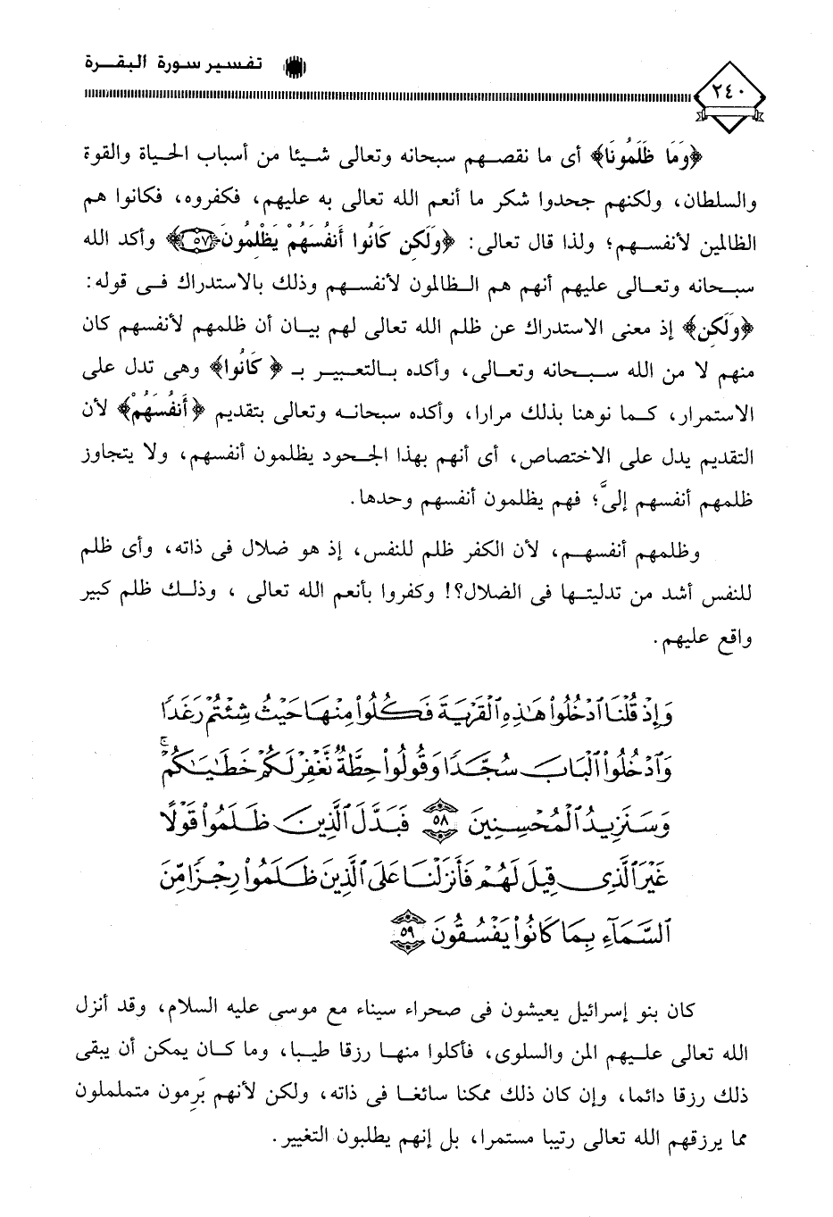 (وَإِذْ قُلْنَا ادْخُلُوا هَذِهِ الْقَرْيَةَ فَكُلُوا مِنْهَا حَيْثُ شِئْتُمْ رَغَدًا وَادْخُلُوا الْبَابَ سُجَّدًا وَقُولُوا حِطَّةٌ نَغْفِرْ لَكُمْ خَطَايَاكُمْ وَسَنَزِيدُ الْمُحْسِنِينَ (58) فَبَدَّلَ الَّذِينَ ظَلَمُوا قَوْلًا غَيْرَ الَّذِي قِيلَ لَهُمْ فَأَنْزَلْنَا عَلَى الَّذِينَ ظَلَمُوا رِجْزًا مِنَ السَّمَاءِ بِمَا كَانُوا يَفْسُقُونَ (59)