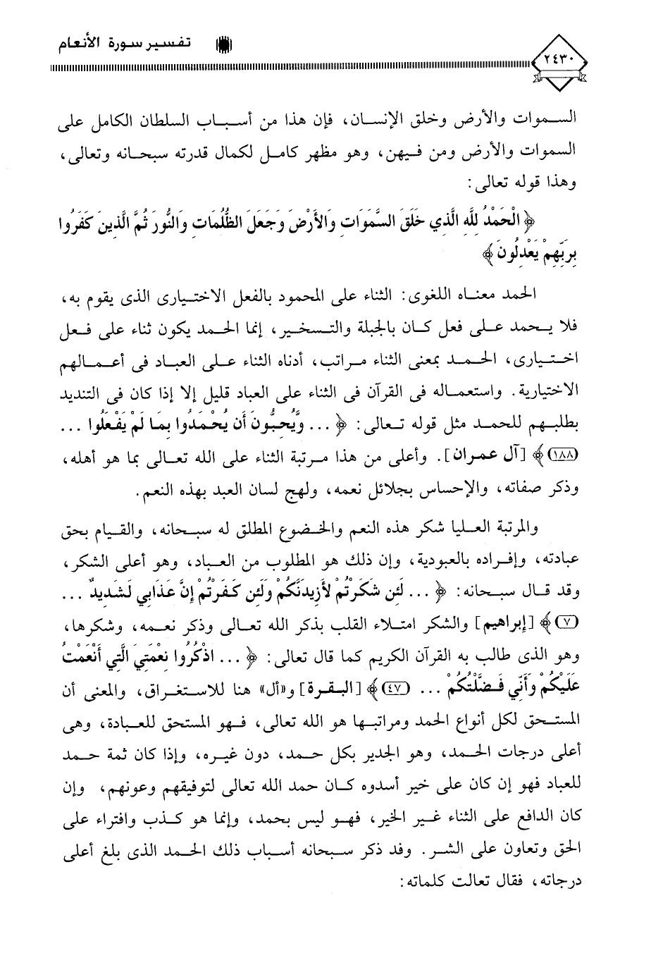 (الْحَمْدُ للَّه الَّذي خَلَقَ السَّمَوَات وَالأَرْضَ وَجَعَلَ الظُّلُمَات وَالنُّورَ ثُمَّ الَّذينَ كَفَرُوا بِرَبِّهِمْ يَعْدِلُونَ)