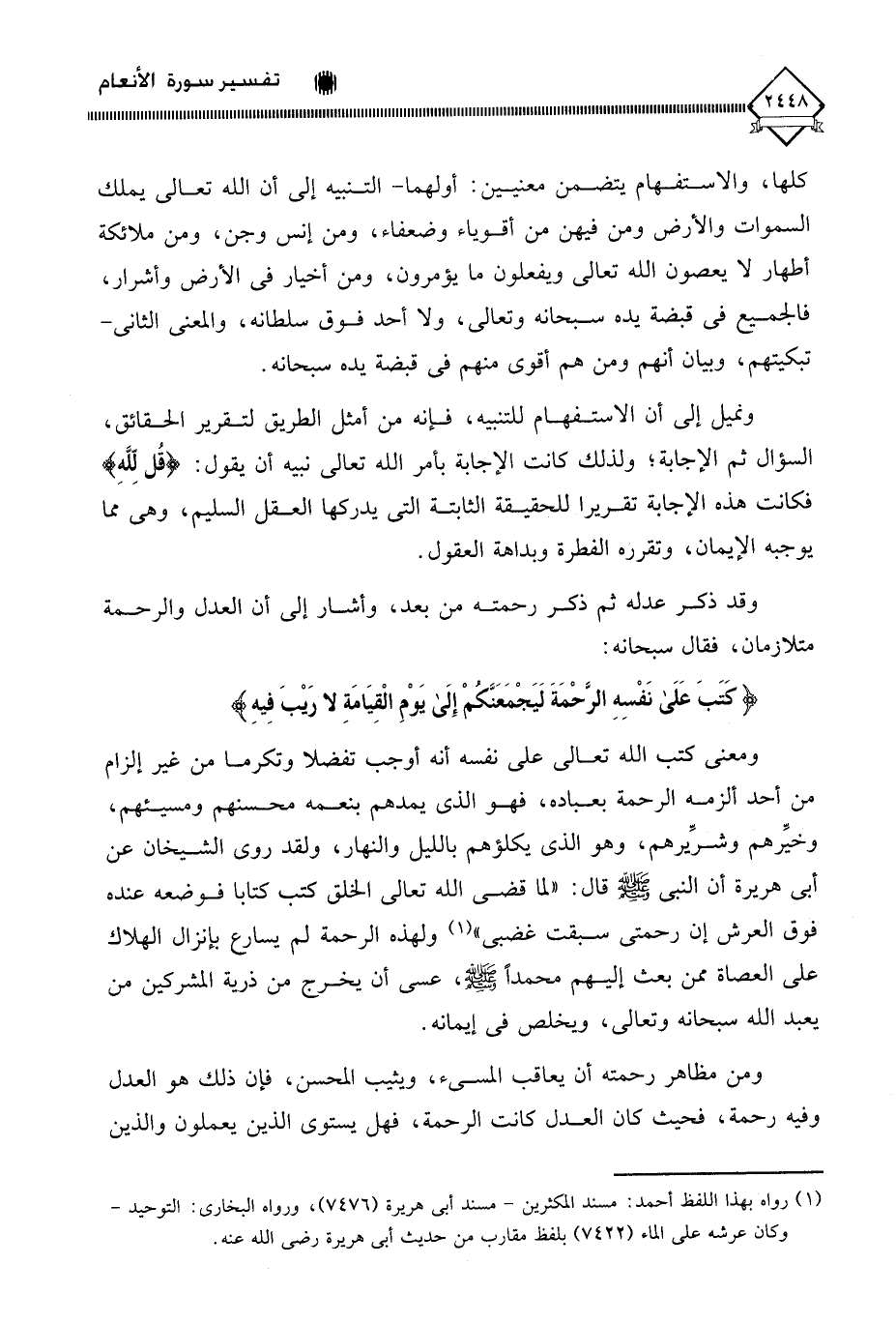 (كَتَبَ عَلَى نَفْسِهِ الرَّحْمَةَ لَيَجْمَعَنَّكُمْ إِلَى يَوْمِ الْقِيَامَةِ لَا رَيْبَ فِيهِ)