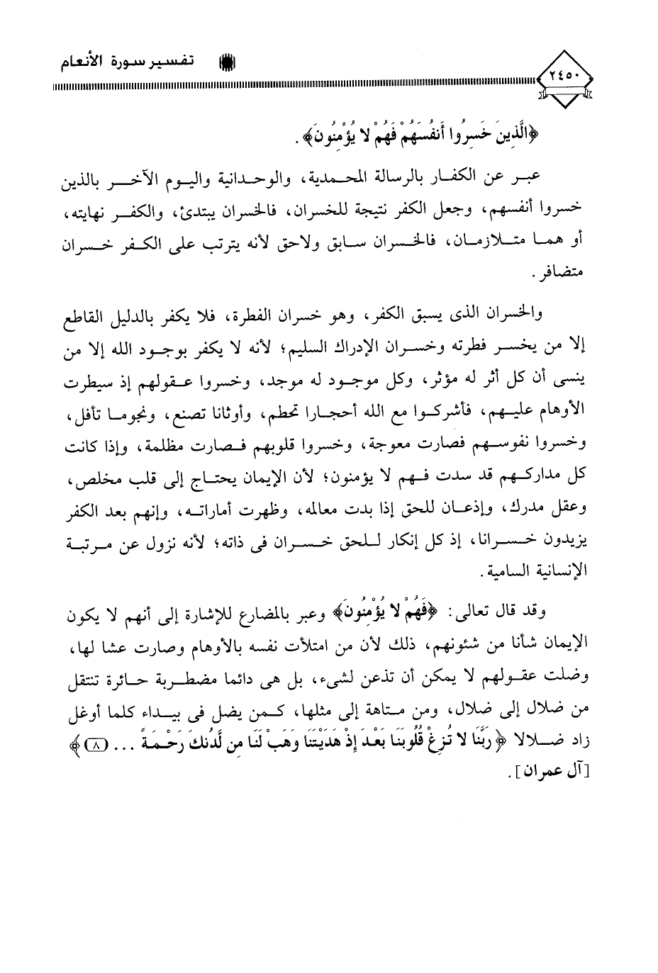 (الَّذِينَ خَسِرُوا أَنْفُسَهُمْ فَهُمْ لَا يُؤْمِنُونَ).
