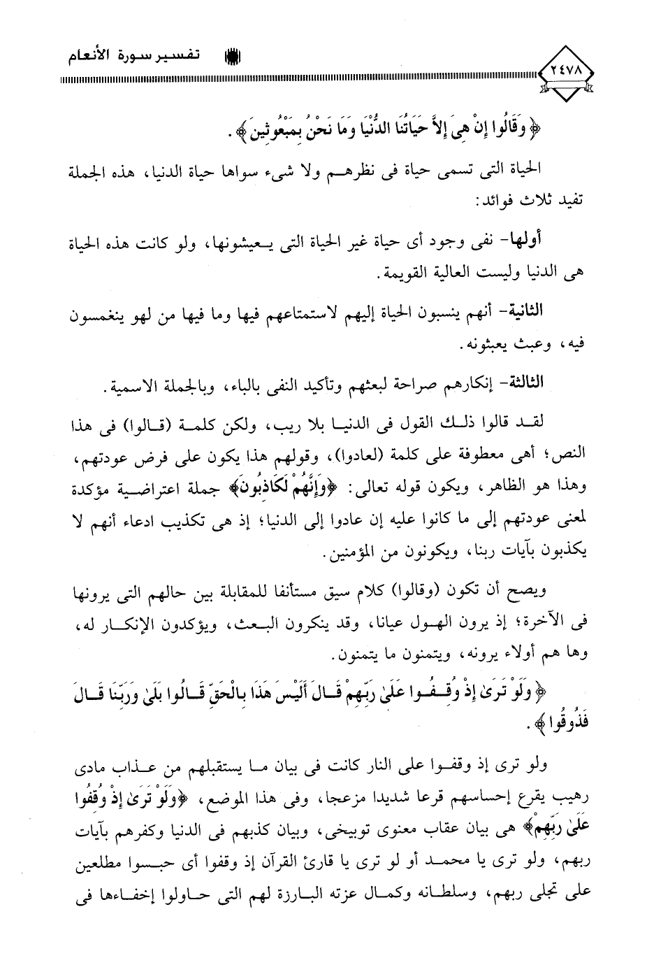 لقد قالوا ذلك القول في الدنيا بلا ريب، ولكن كلمة (قالوا) في هذا النص " أهي معطوفة على كلمة (لعادوا)، وقولهم هذا يكون على فرض عودتهم، وهذا هو الظاهر، ويكون قوله تعالى: (وَإِنَّهُمْ لَكَاذِبُونَ) جملة اعتراضية مؤكدة لمعنى عودتهم إلى ما كانوا عليه إن عادوا إلى الدنيا، إذ هي تكذيب ادعاء أنهم لا يكذبون بآيات ربنا، ويكونون من المؤمنين.
